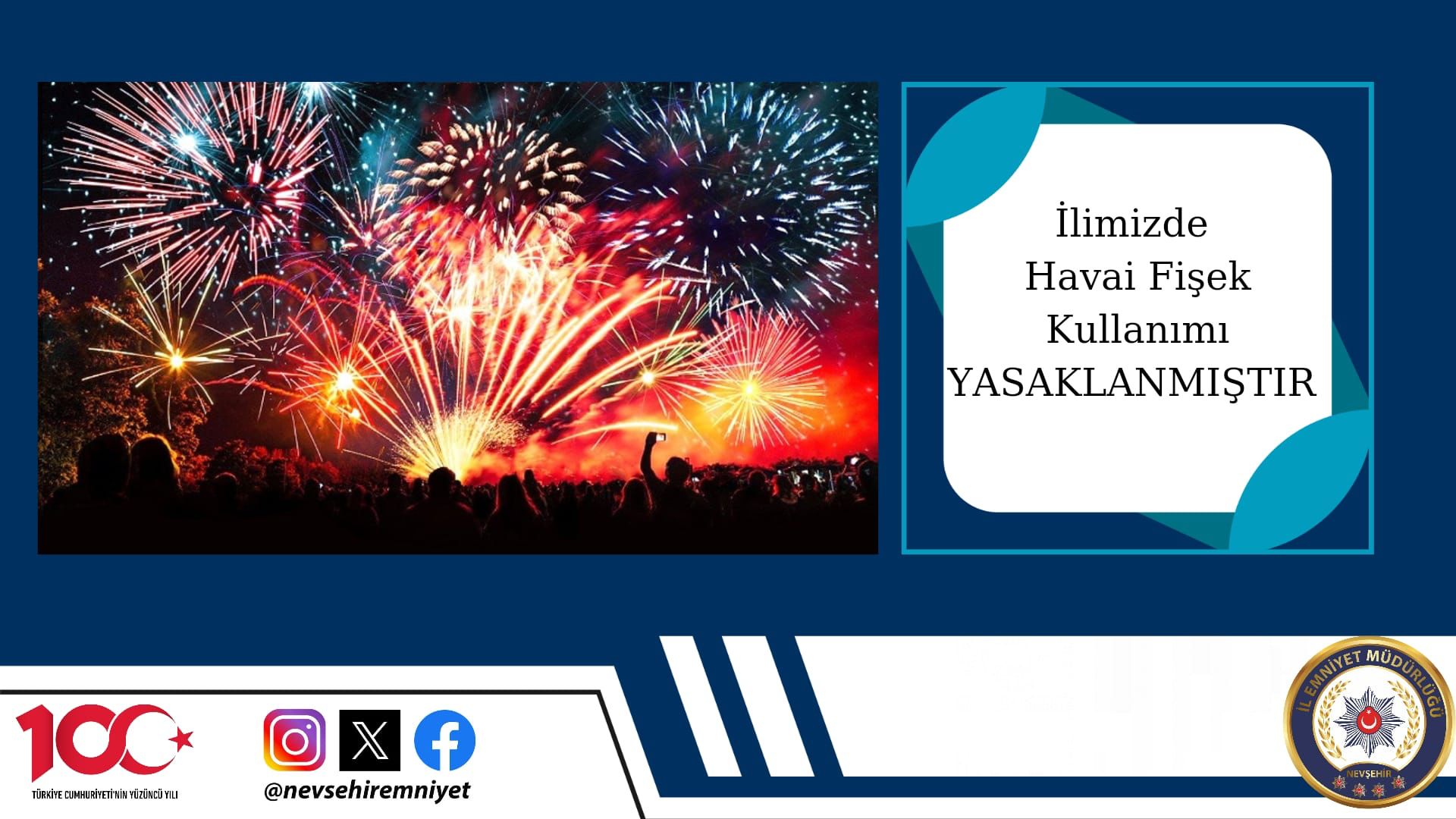 “İlimiz sınırları dahilindeki doğal sit alanlarında bulunan doğal taşınmaz kültür varlıklarının zarar görmemesi, bilinçsiz kullanımdan kaynaklanan yaralanma ve sakatlanmaların önüne geçilmesi ile huzur ve güvenliğin sağlanması amacıyla 5442 sayılı İl İdaresi Kanunu’nun 11’inci maddesinin ‘C’ bendi gereğince Nevşehir il hudutları dahilinde havai fişek olarak bilinen şenlik ve işaret fişeklerinin kullanımı yasaklanmıştır.”