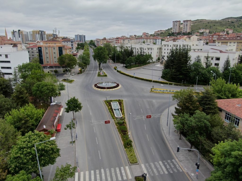 Sokağa çıkma kısıtlaması sonrasında adeta hayalet şehre dönen Nevşehir havadan görüntülendi.