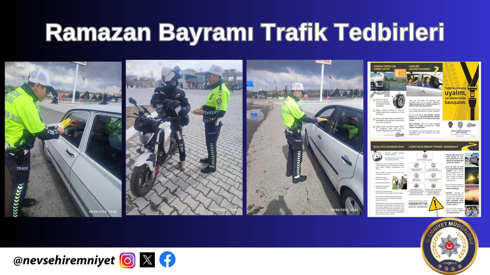 Ramazan Bayramı münasebetiyle halkımızın yoğun olduğu yerlerde eğitim ve bilgilendirme faaliyetleri kapsamında “Hayatla Yarışılmaz” bilgilendirmesi yapılıyor. Nevşehir il merkezinde Hayatla Yarışılmaz mottolu afişler asılırken şehirlerarası seyehat eden araçlara yönelik”Trafik Kurallarına Uyalım Sevdiklerimize Kavuşalım” mottolu broşürler araç sürücülerine ve yolculara dağıtılmış ve gerekli bilgilendirmeler yapıldı.