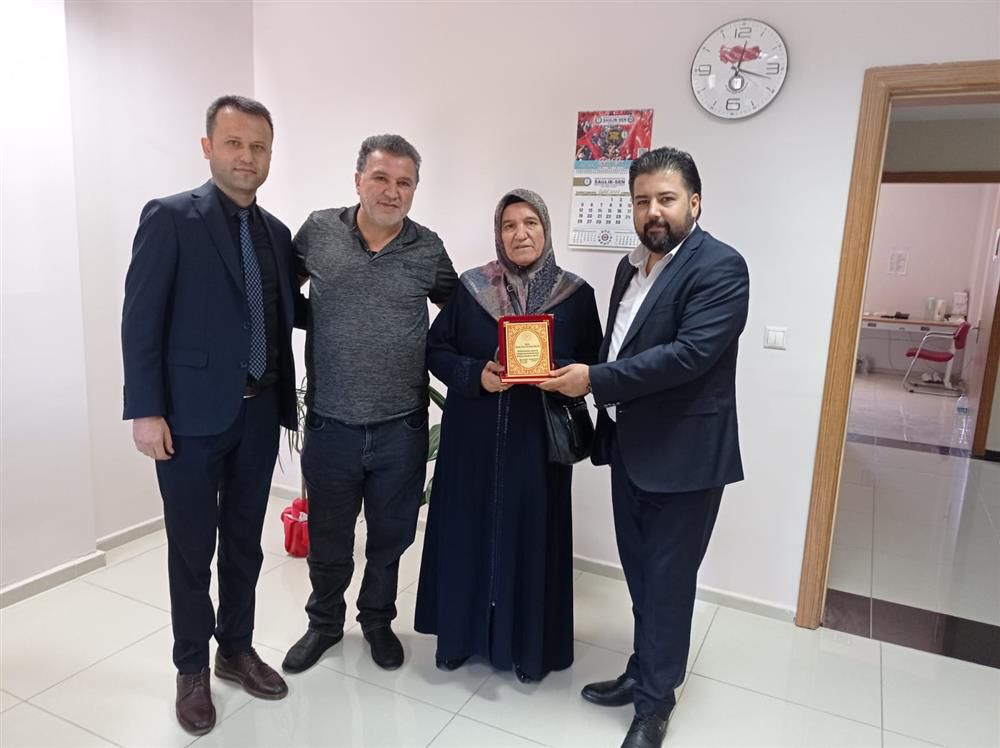 Bağışta bulunan Fatma Ercan’a Başhekimi Dr. Sedat Orhan ve İdari Mali İşler Müdürü İlker Ceyhan tarafından plaket takdim edildi.