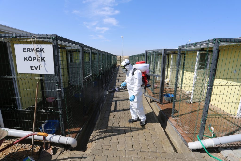 Bu kapsamda, Belediye Başkanı Rasim Arı’nın girişimleri ile Nevşehir’e kazandırılan ve Türkiye’nin en modern hayvan barınaklarından biri olan ‘Nevşehir Belediyesi Hayvan Kasabası’ içerisinde de temizlik ve dezenfekte çalışmaları gerçekleştiriliyor.