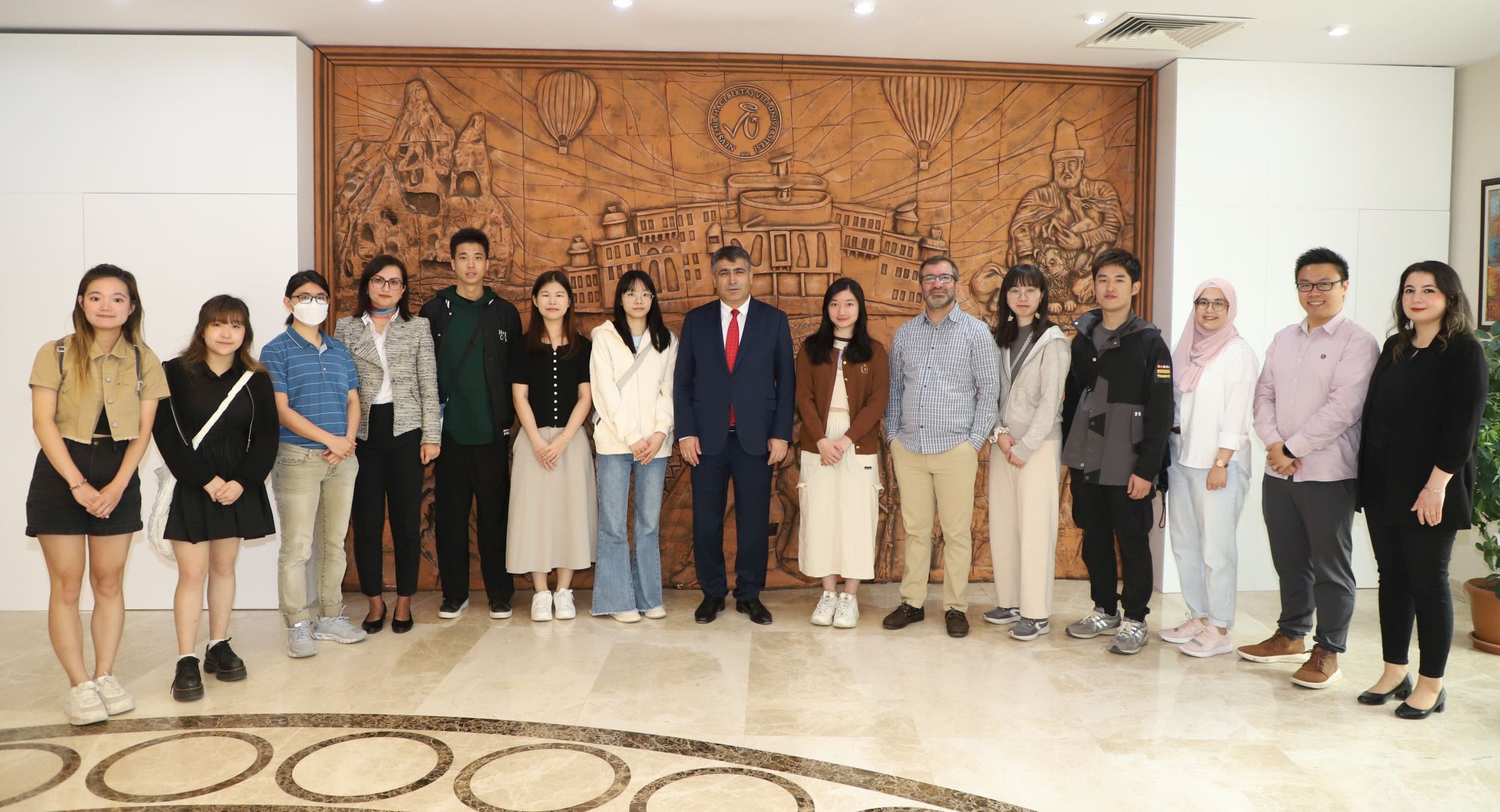 Hong Kong Eğitim Üniversitesi’nde Eğitim Politikası ve Liderlik bölümünde öğretim üyesi olarak görev yapan Doç. Dr. Sedat Gümüş’ün rehberlik ettiği lisans öğrencileri ve öğretim elemanlarından oluşan heyet, Nevşehir Hacı Bektaş Veli Üniversitesi (NEVÜ) Rektörü Prof. Dr. Semih Aktekin’i ziyaret etti.