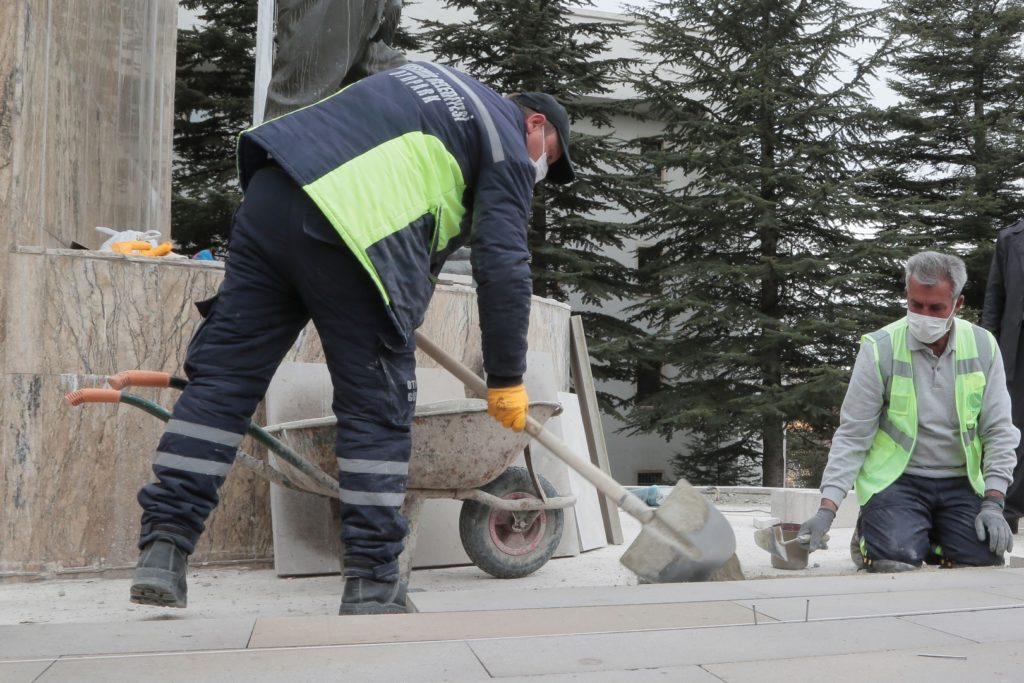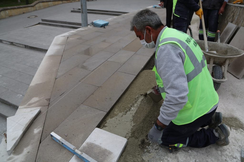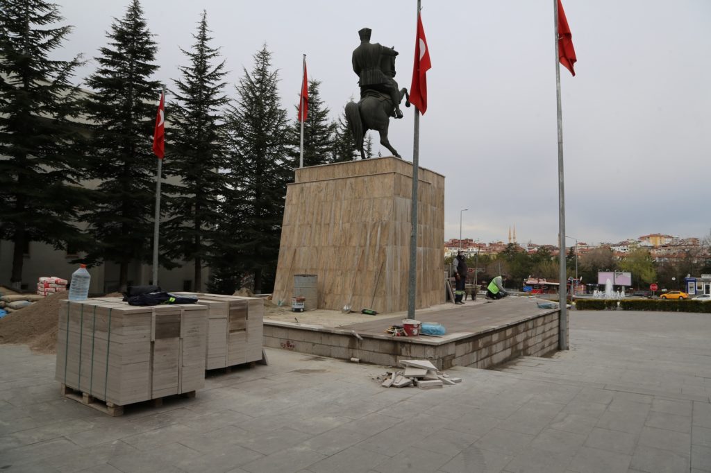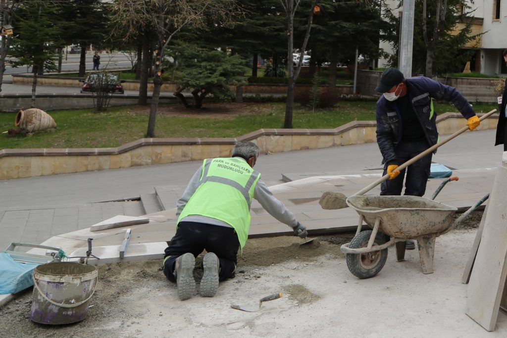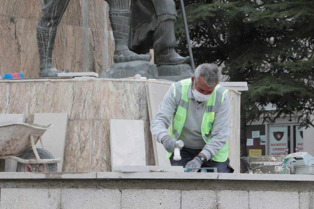 Nevşehir Belediyesi Park ve Bahçeler Müdürlüğü ekiplerince yapılan çalışmalarla birlikte, anıt kaidesinde bulunan ve mevsimsel şartlardan dolayı yıpranan taşlar yenileniyor.
