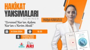 Yazar ve Eğitmen Hülya Kavuzlu tarafından gerçekleştirilecek olan Hakikat Yansımaları Semineri, 14 Ekim Pazartesi günü Kapadokya Kültür ve Sanat Merkezi’nde gerçekleştirilecek.