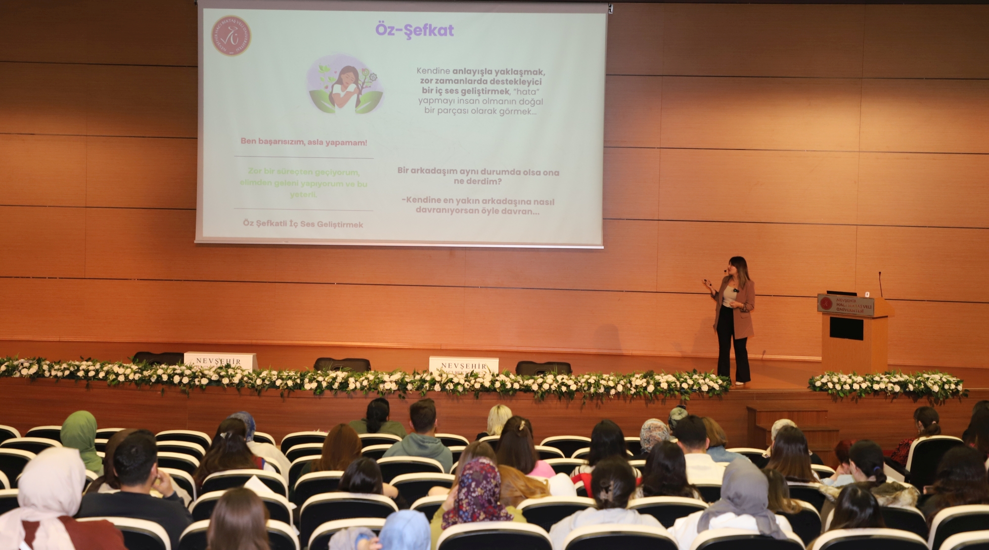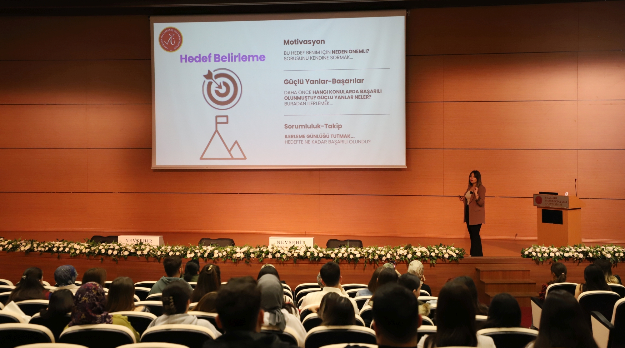 Nevşehir Hacı Bektaş Veli Üniversitesi (NEVÜ) Eğitim Fakültesi’nden Arş. Gör. Ayşenaz Ekin Duman, öğrencilerin kişisel ve akademik gelişimlerine katkı sağlamayı amaçlayan “Değişim Seninle Başlar: İçindeki Potansiyeli Keşfet” temalı seminer verdi.