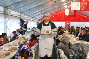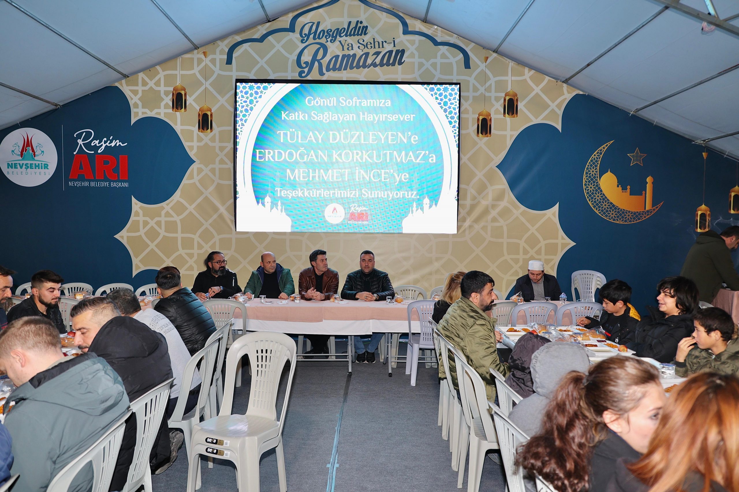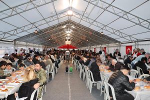 Nevşehir Belediyesi’nin ev sahipliğinde ki Gönül Sofrasında her gün binlerce kişi aynı sofrada oruç açarak Ramazan bereketi yaşanıyor. Bugünkü hayırseverler Tülay Düzleyen, Erdoğan Korkutmaz ve Mehmet İnce’ye Gönül Sofrasına verdikleri katkılardan dolayı teşekkür eden Nevşehir Belediye Başkanı Rasim Arı “Ramazan sadece oruç tutmak değil, paylaşmak, gönül almak ve sofraları bereketlendirmektir. Bu akşam da iftar çadırımızda, hayırda yarışan güzel insanlar sayesinde bir sofradan daha bereket, bir lokmadan daha kardeşlik fışkırdı. İnsan, iyilikle güzelleşir; şehir, dayanışmayla büyür. Rabbim, bu birlikteliği daim kılsın” diye konuştu.