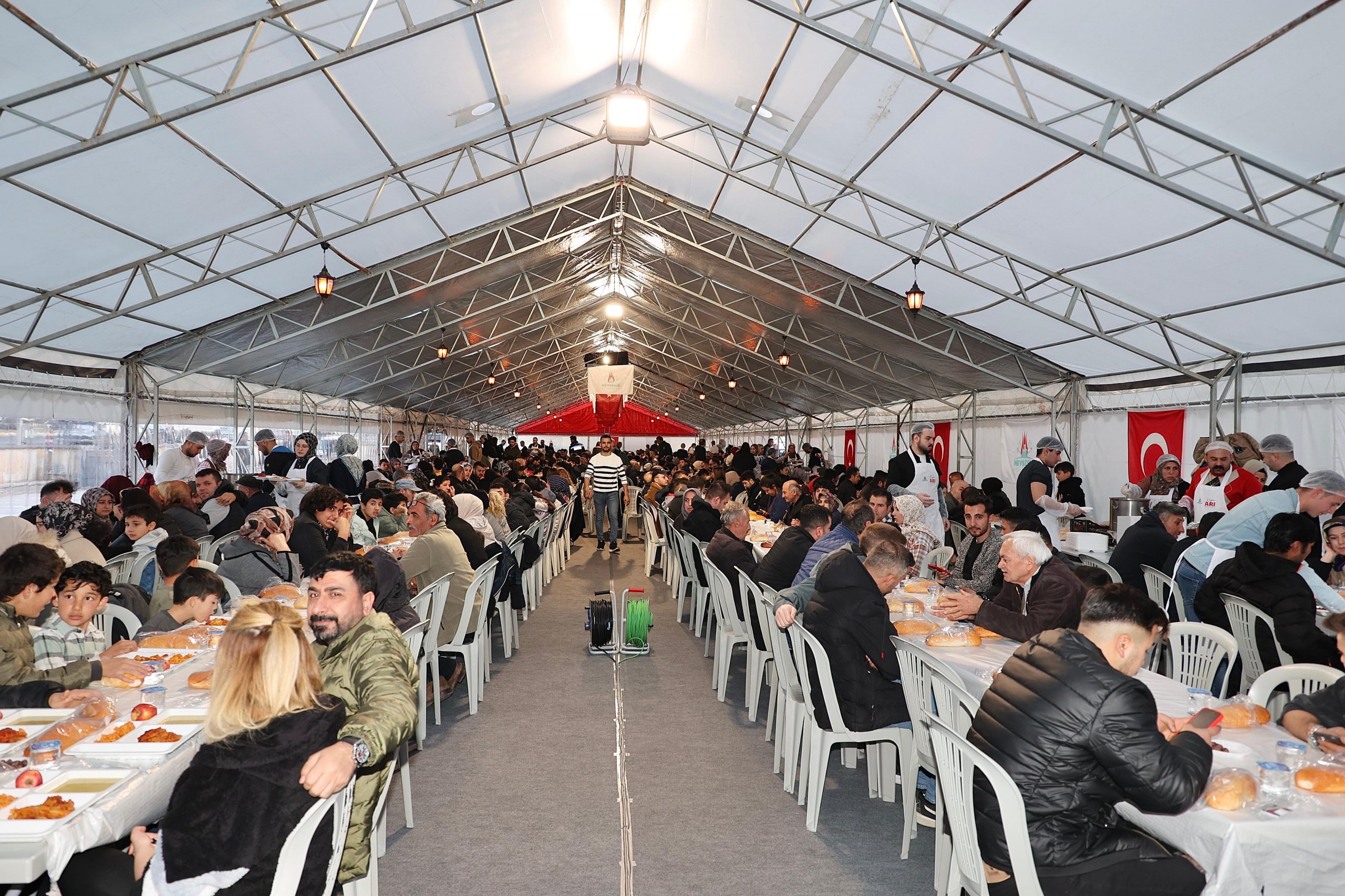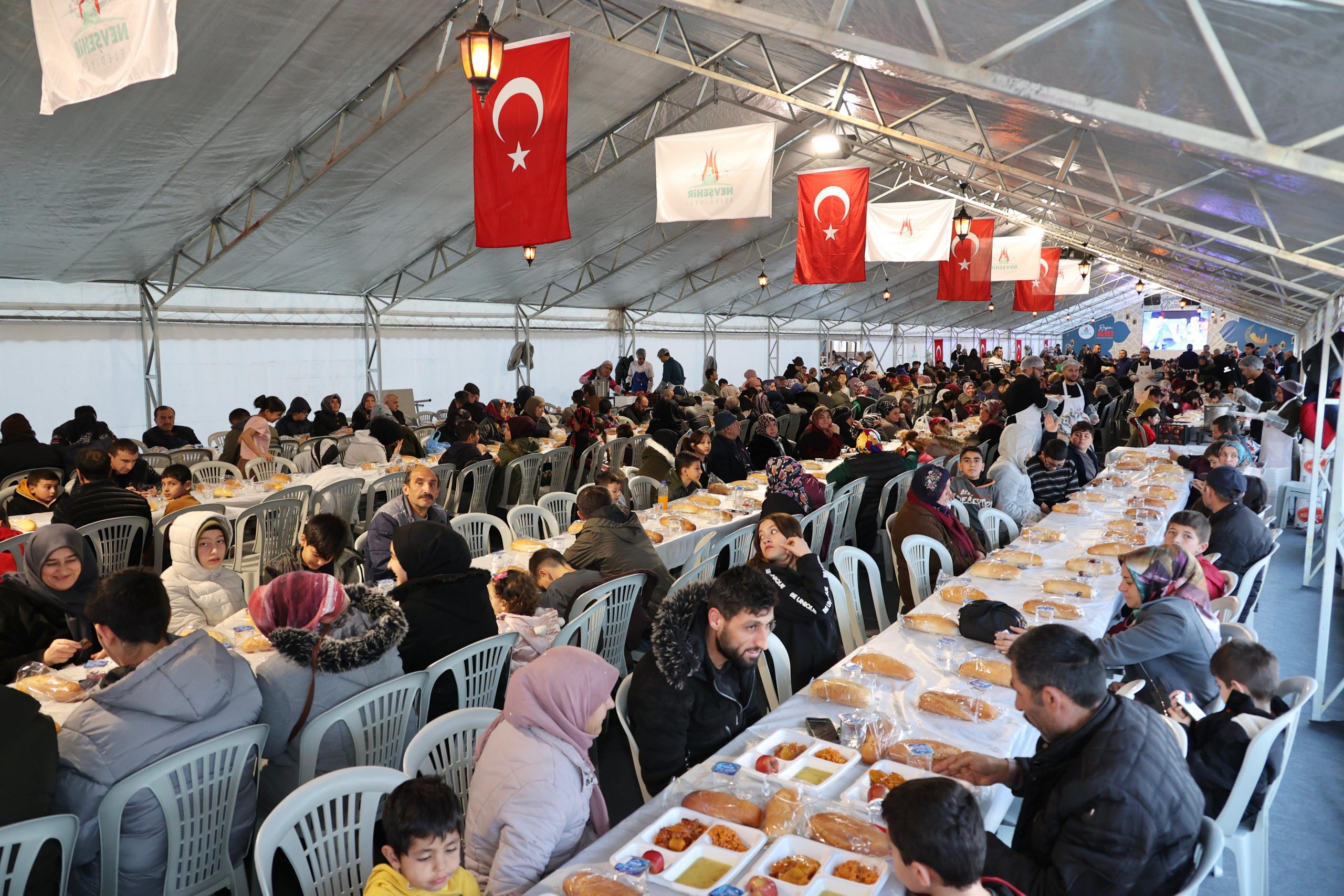 Nevşehir Belediyesi ve hayırseverlerin katkılarıyla düzenlenen Gönül Sofrası yemek organizasyonunda binlerce kişilik iftar sofraları kurulurken her gün düzenlenen ilahi dinletisi, semazen gösterisi ve Hacivat-karagöz oyununun Ramazan ayı boyunca devam edeceği belirtildi.