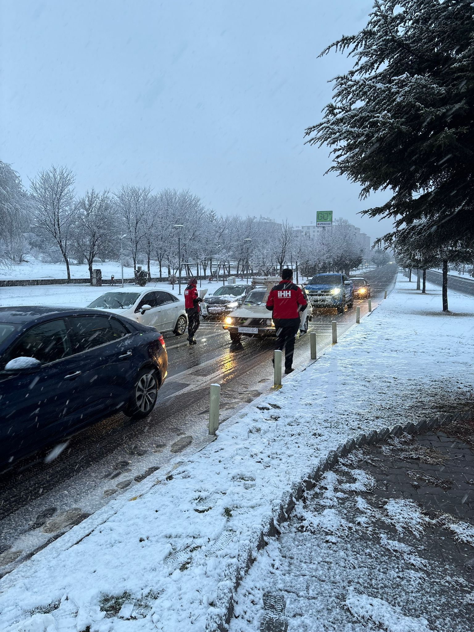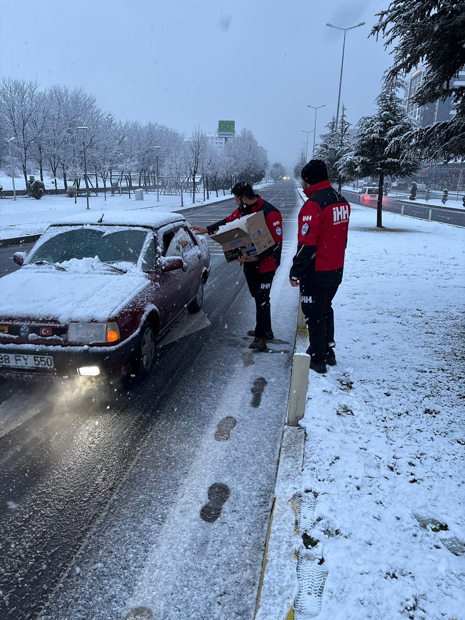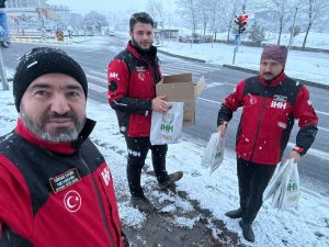 Kar yağışı nedeniyle gidecekleri yerlere iftar vaktinde henüz ulaşamamış olanlar, İHH ekiplerinin iftar kumanyaları ile karşılaştı.
