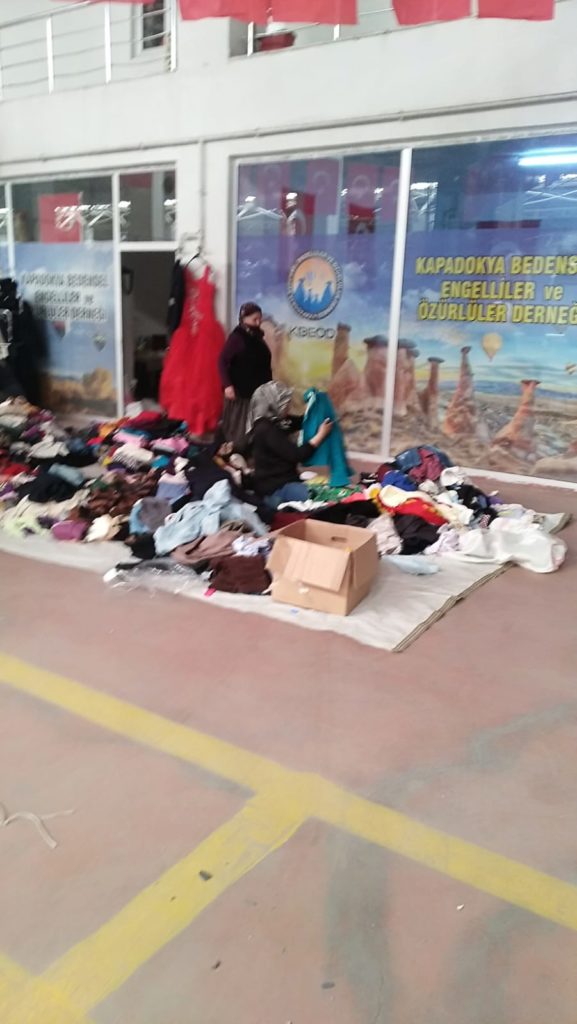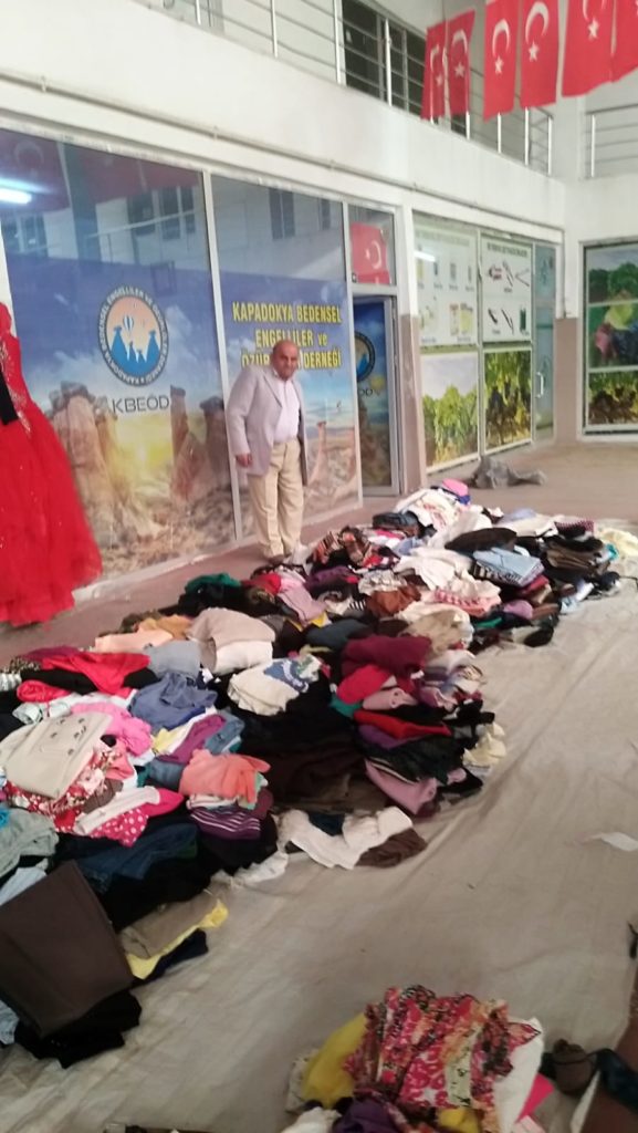Kapadokya Bedensel Engelliler ve Özürlüler Derneği başkanlığı bir yandan ramazan bayramı öncesinde gıda kolisi, patates tekerlekli sandalye dağıtımını sürdürürken bir yandan da ihtiyaç sahibi ailelere yönelik kıyafet yardımına da başladı.