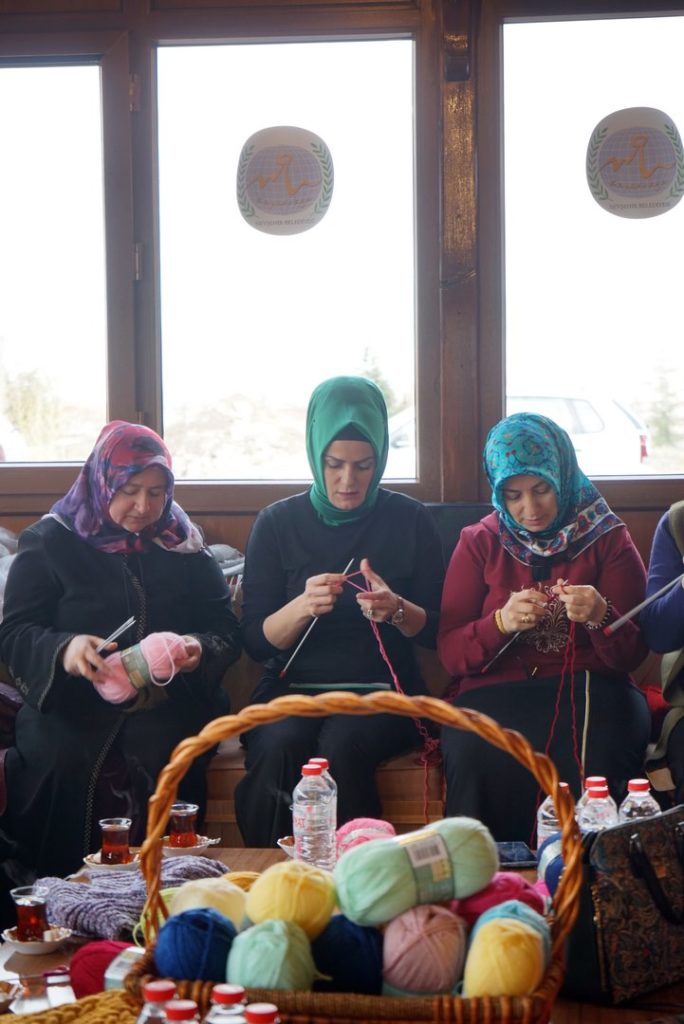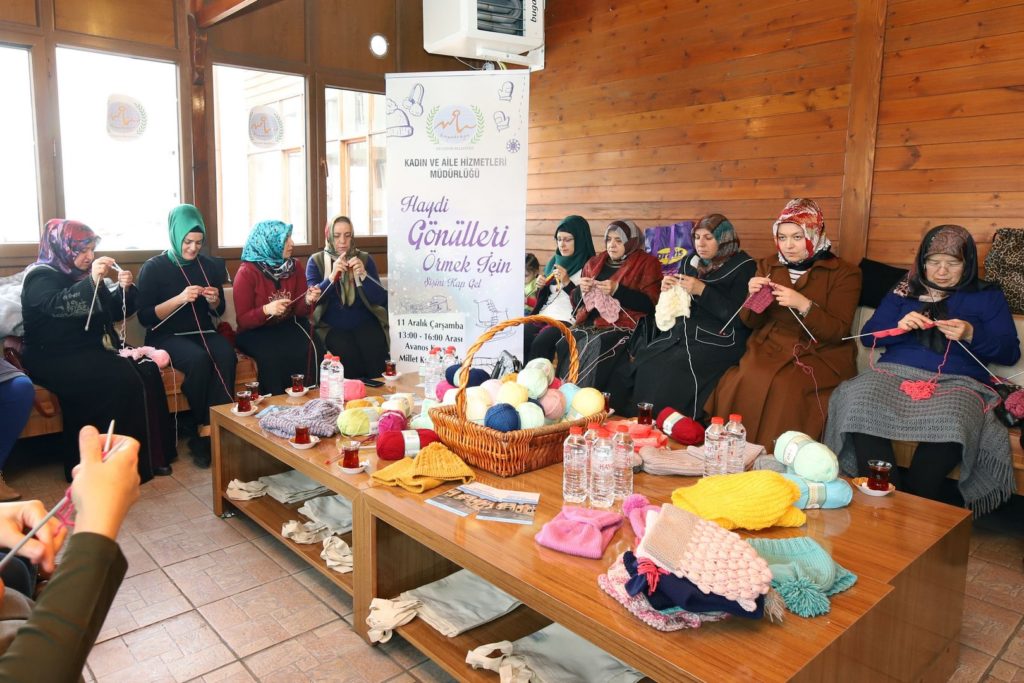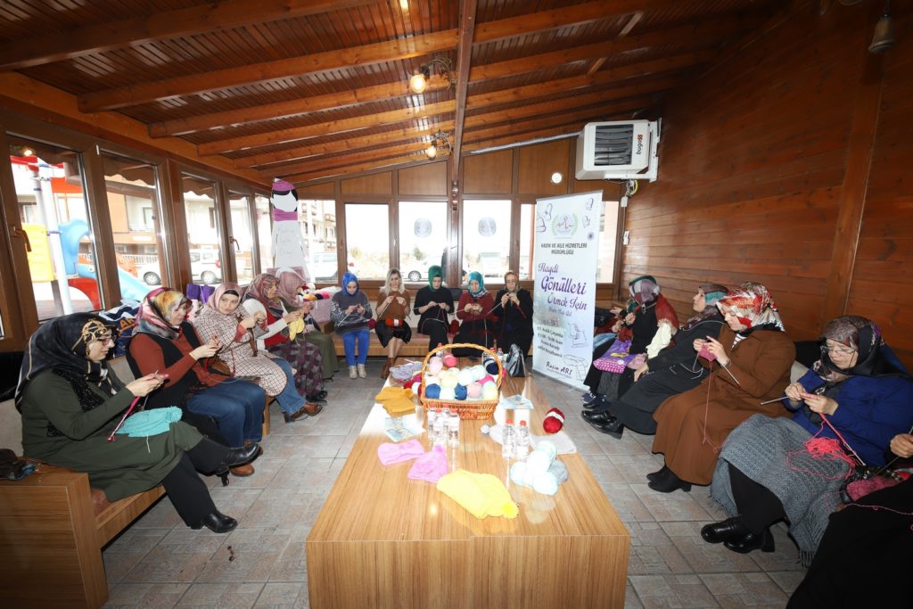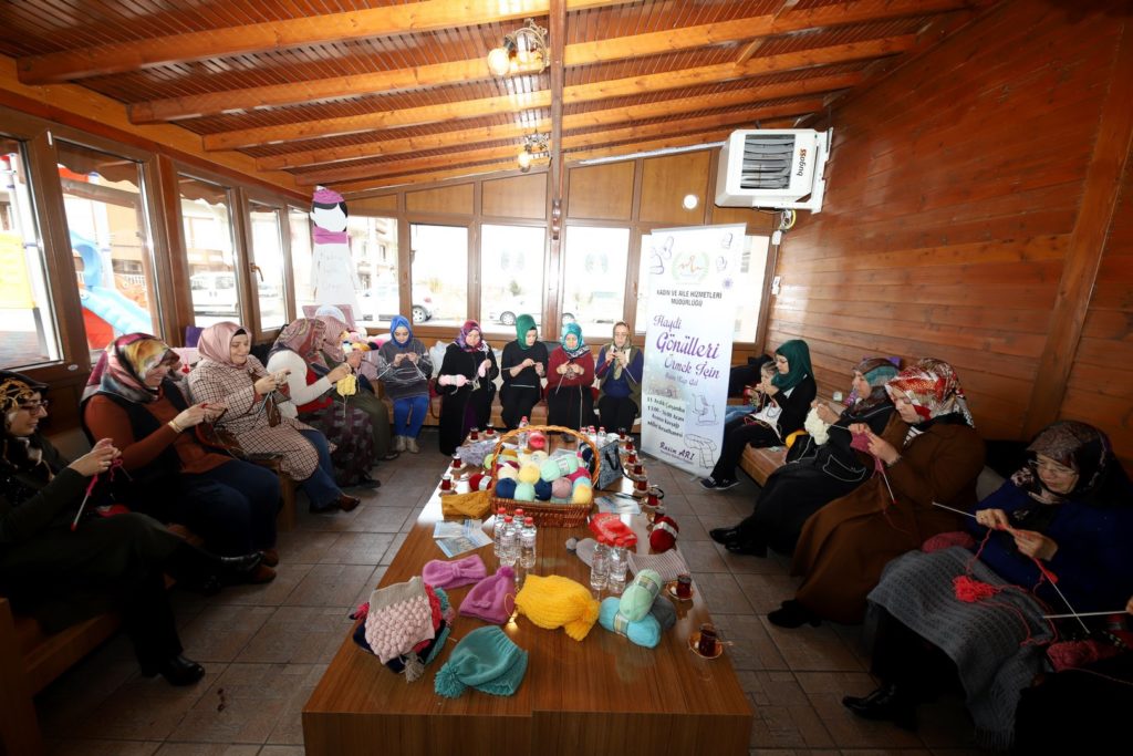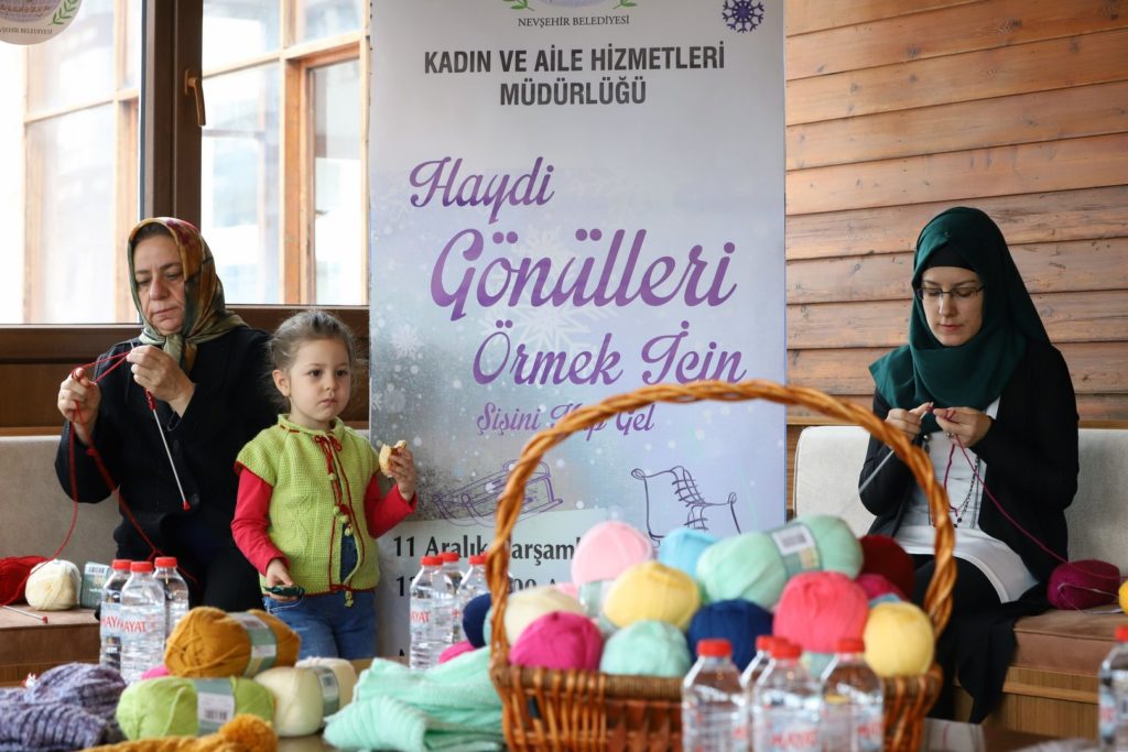 Belediye Başkanı Rasim Arı’nın eşi Melek Arı’nın öncülüğünde Nevşehir Belediyesi Kadın ve Aile Hizmetleri Müdürlüğü tarafından hazırlanan proje kapsamında Melek Arı ve gönüllü kadınlar, Nevşehir’deki çeşitli okullardaki ihtiyaç sahibi öğrencilerin soğuk havalarda üşümemesi için onlara atkı ve bere örmek üzere bir araya geldi.