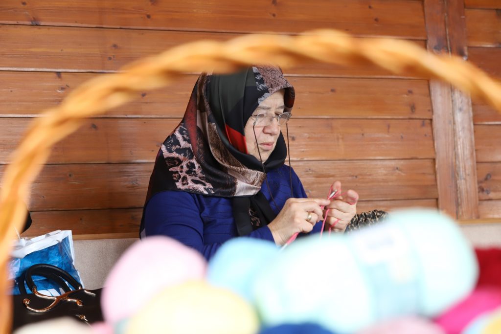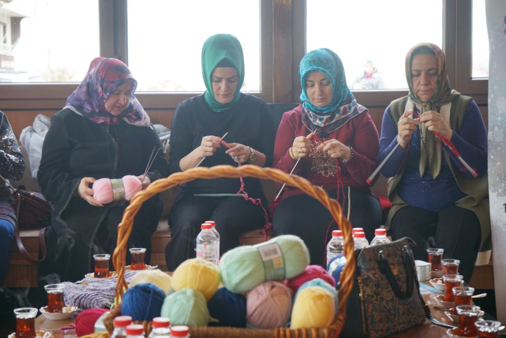 Melek Arı’nın sosyal medyadan çağrısı ile birlikte Avanos Kavşağındaki Millet Kıraathanesi’nde toplanan onlarca gönüllü kadın, burada bir yandan çaylarını yudumlarken bir yandan da öğrenciler için farklı renk ve desenlerde atkı ve bere ördü.