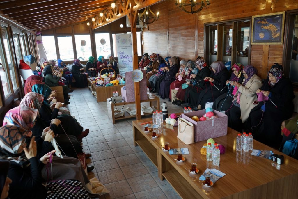 Etkinlik sonunda Melek Arı’nın önümüzdeki günlerde ziyaret edeceği okullarda dağıtılmak üzere onlarca atkı ve bere örüldü.