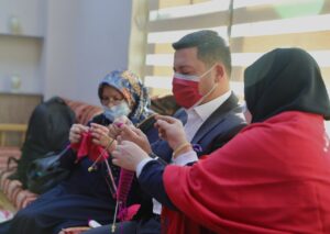 Bu arada Gençlik Merkezi içerisinde bir araya gelen kadınları ziyaret eden Nevşehir Belediye Başkanı Rasim Arı da eline şiş alarak örgü ördü.