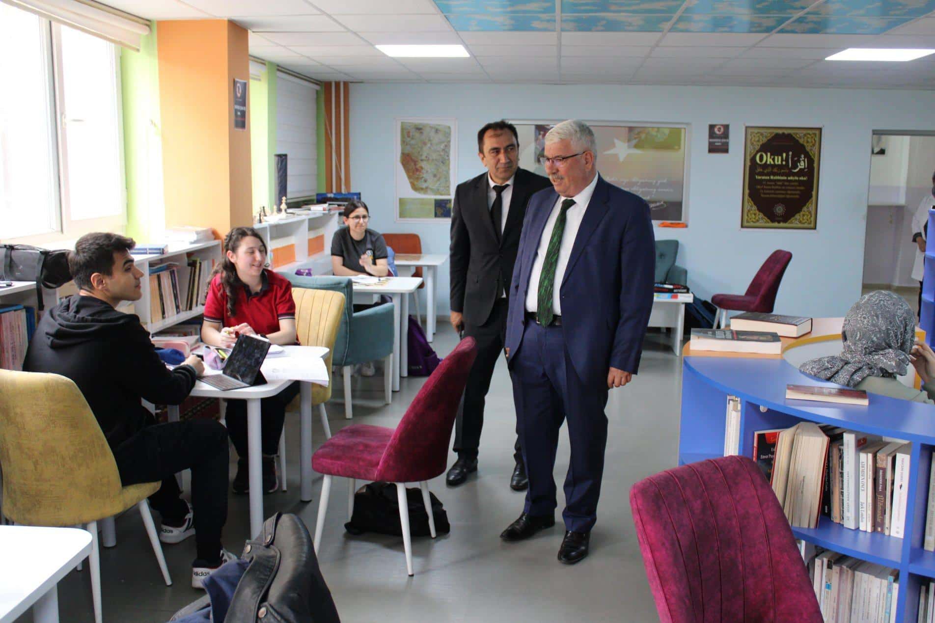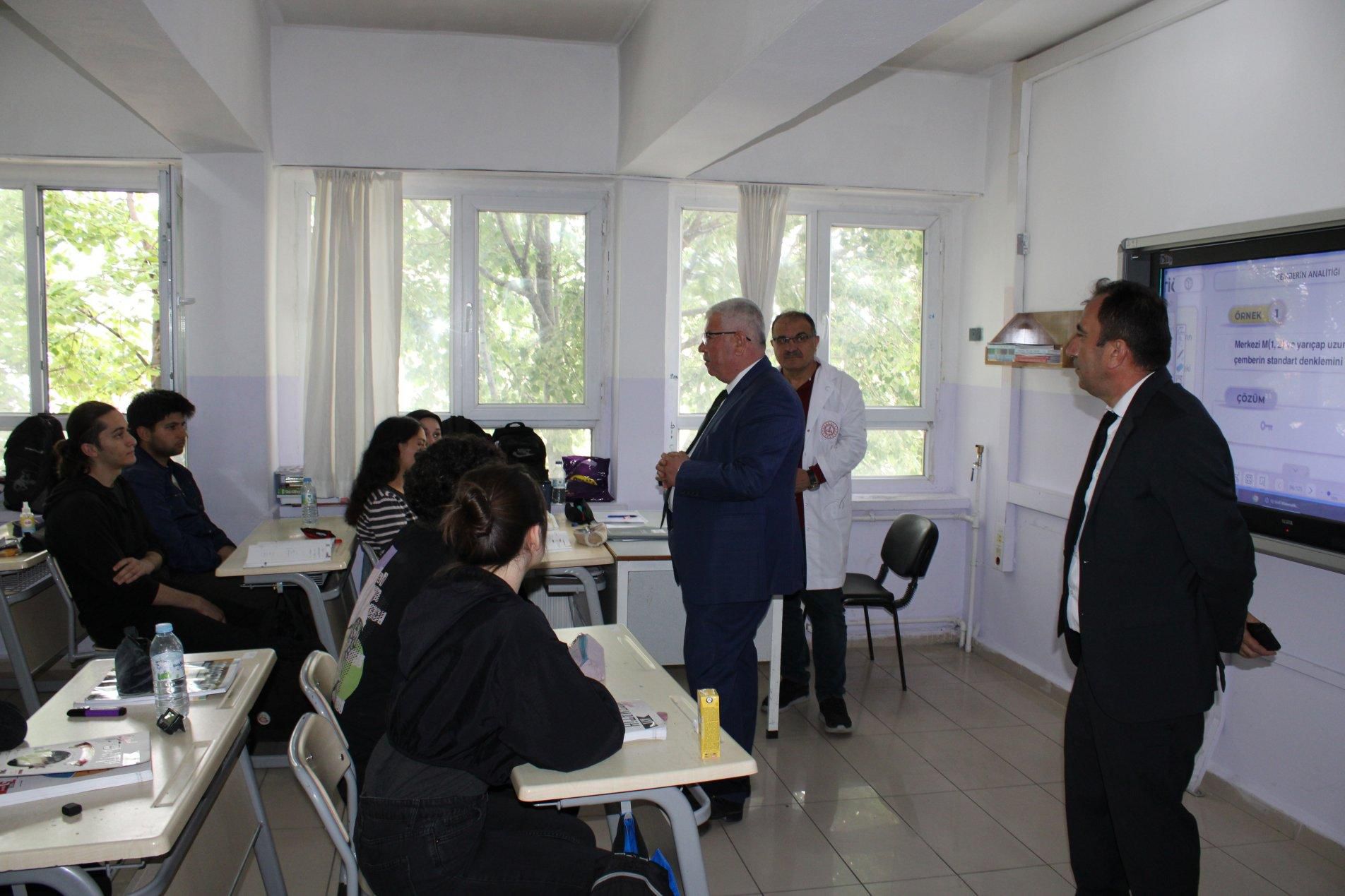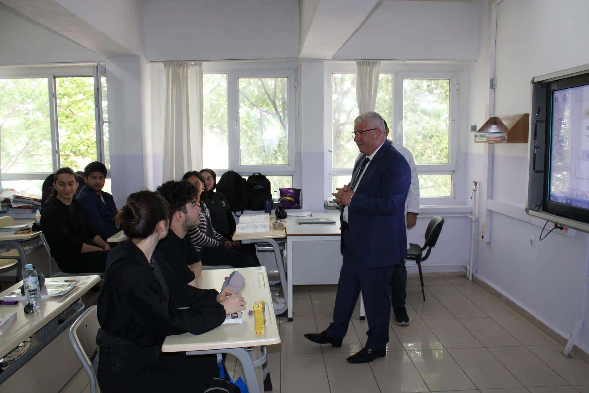 Öğretmenler odasında öğretmenlerle de bir araya gelen Sayın YAZICI; Milli Eğitim Bakanlığı öncülüğünde yürütülen ”Türkiye Yüzyılı Maarif Modeli” kapsamında hazırlanan yeni müfredat değişikliği hakkında fikir alışverişinde bulunup talep ve önerilerini alarak bilgi verdi. İl Milli Eğitim Müdürü Yusuf YAZICI; eğitime emek veren, hep birlikte aklın ve bilimin ışığında kendi çağlarının destanını yazacak bireyler yetiştirmeye çaba sarf eden değerli meslektaşlarımıza ”Gelecek Yüzyılın Türkiye’sini” inşaa etme yolunda büyük görev düştüğünü belirtti. Bu konuda bugüne kadar olduğu gibi bugünden sonra da aynı başarı ve özveriyle görevlerini yürüteceklerine inandığını dile getirerek idareci ve öğretmenlere tek tek teşekkür ederek başarılar diledi.