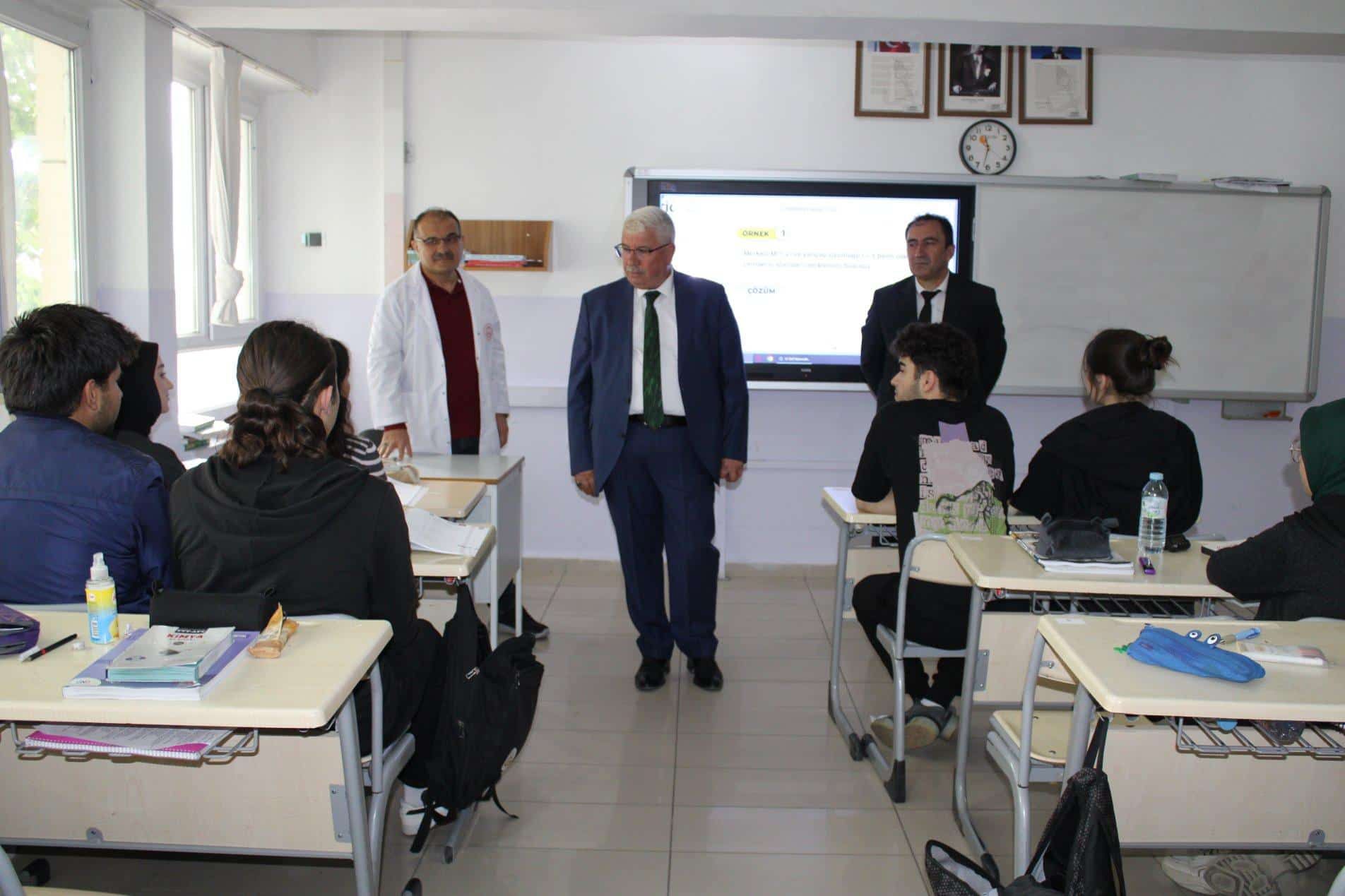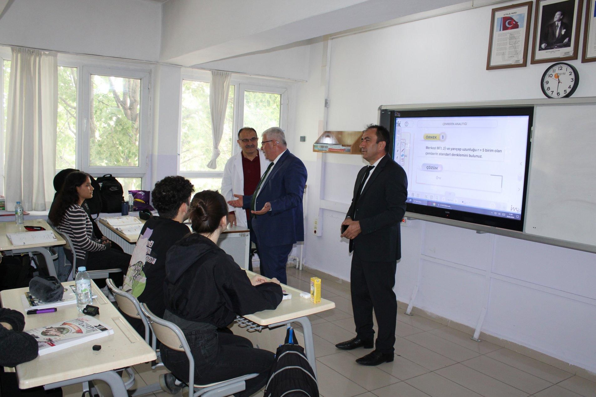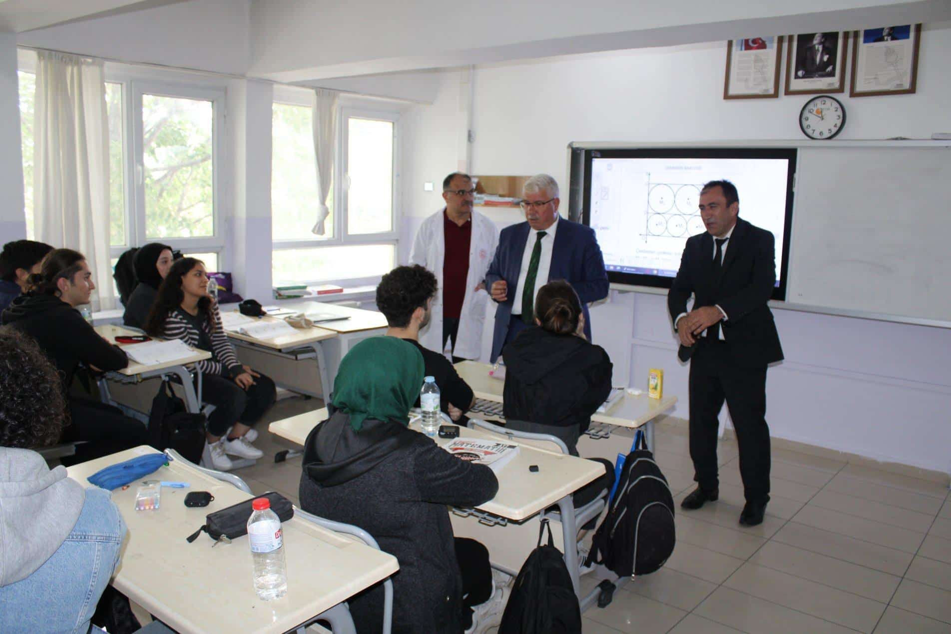 Öğretmenler odasında öğretmenlerle de bir araya gelen Sayın YAZICI; Milli Eğitim Bakanlığı öncülüğünde yürütülen ”Türkiye Yüzyılı Maarif Modeli” kapsamında hazırlanan yeni müfredat değişikliği hakkında fikir alışverişinde bulunup talep ve önerilerini alarak bilgi verdi. İl Milli Eğitim Müdürü Yusuf YAZICI; eğitime emek veren, hep birlikte aklın ve bilimin ışığında kendi çağlarının destanını yazacak bireyler yetiştirmeye çaba sarf eden değerli meslektaşlarımıza ”Gelecek Yüzyılın Türkiye’sini” inşaa etme yolunda büyük görev düştüğünü belirtti. Bu konuda bugüne kadar olduğu gibi bugünden sonra da aynı başarı ve özveriyle görevlerini yürüteceklerine inandığını dile getirerek idareci ve öğretmenlere tek tek teşekkür ederek başarılar diledi.
