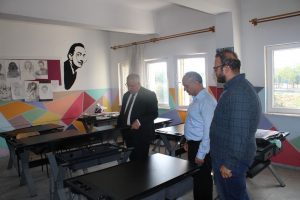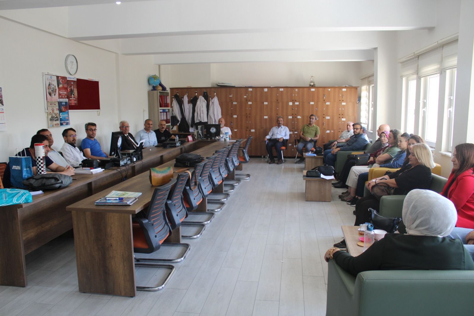 İdareci ve öğretmenlerle de öğretmenler odasında bir araya gelen İl Milli Eğitim Müdürü Yusuf Yazıcı, okulun genel durumu hakkında bilgi aldı ve eğitim sürecine dair fikir alışverişinde bulundu.