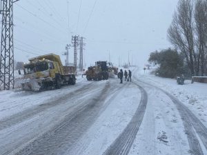 Kapanan yolları açarak trafik akışını sağlayan İl Özel İdaresi ekipleri, yolda kalan araçlara da yardım ederek kurtarıyor.