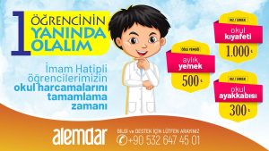İmam Hatip okullarındaki dezavantajlı öğrencilerimize yönelik bu kampanyaya katkınızı rica ederiz. Öğrenci başvuruları okul idaresine yapılacak.