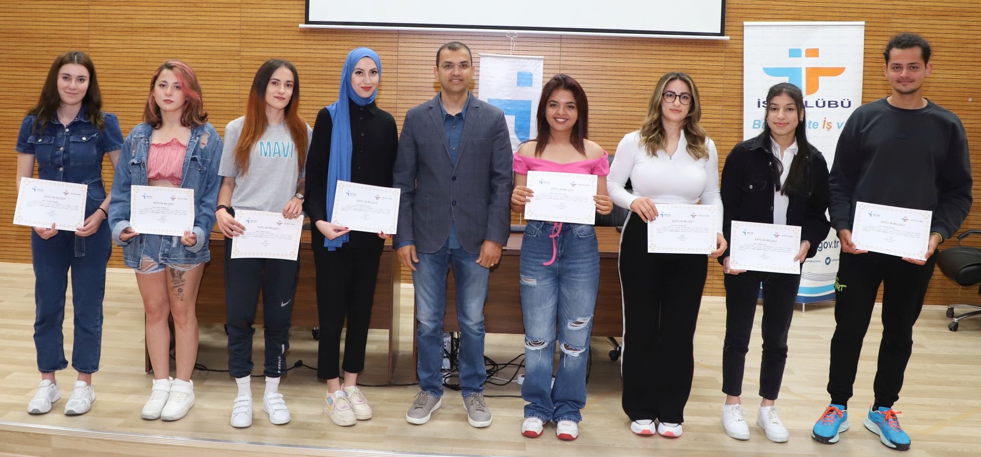 Şehit Eren Bülbül Konferans Salonu’nda düzenlenen sertifika töreninde öğrenciler sertifikalarını NEVÜ Rektör Yardımcısı Prof. Dr. Mutluhan Akın, Spor Bilimleri Fakültesi Dekanı Prof. Dr. Selçuk Akpınar ve Nevşehir İŞKUR Müdürü Şinasi İnanıcı’nın elinden aldılar. Toplu fotoğraf çekiminin ardından sertifika töreni sona erdi.