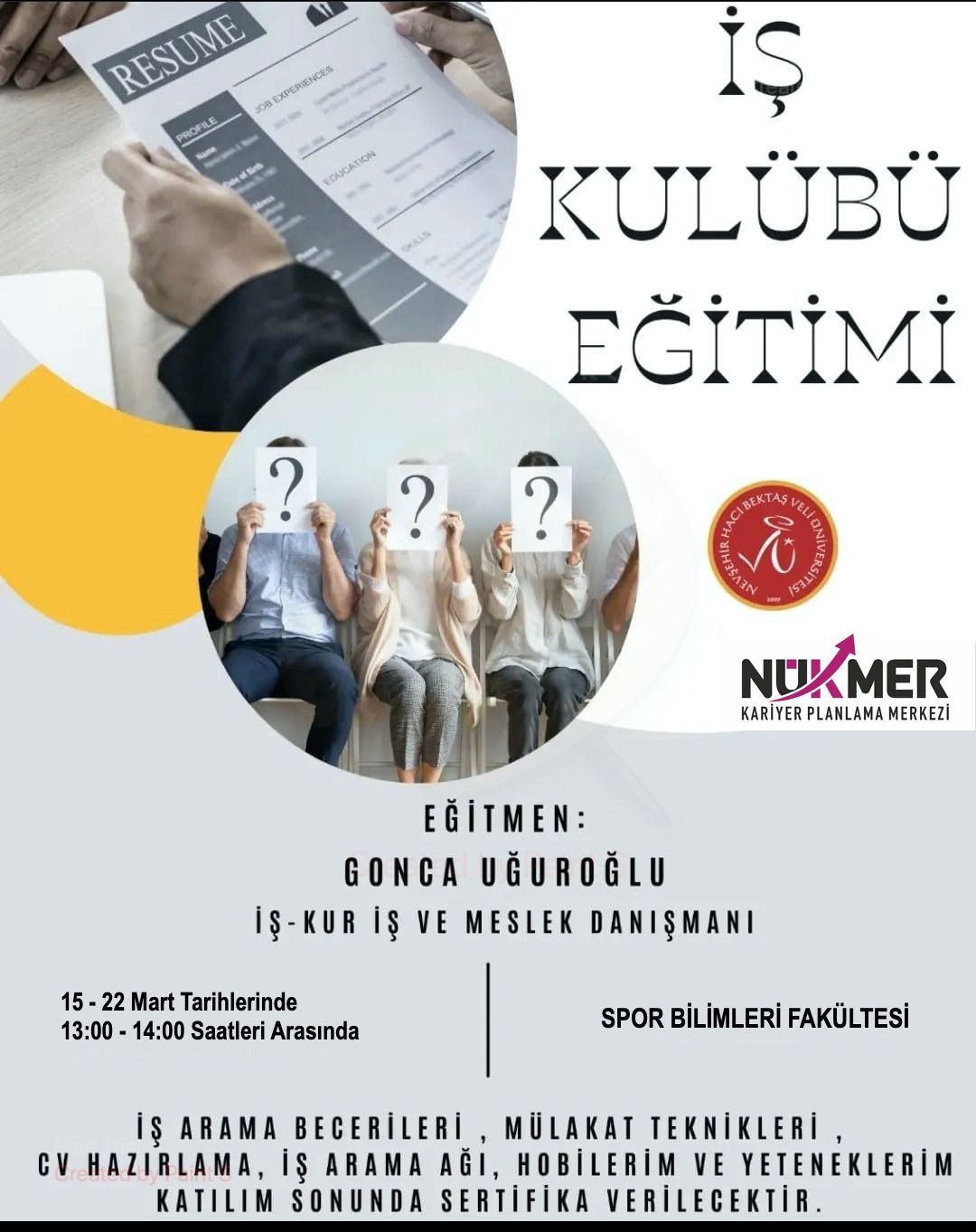 NEVÜ ve İŞKUR arasında imzalanan “İŞKUR Kampüs Hizmetleri” iş birliği protokolü kapsamında NEVÜ Kariyer Planlama Uygulama ve Araştırma Merkezi (NÜKMER) koordinatörlüğünde öğrencilere yönelik; iş arama becerileri, mülakat teknikleri, CV hazırlama, iş arama ağı, hobilerim ve yeteneklerim konularında eğitimlere başlandı.