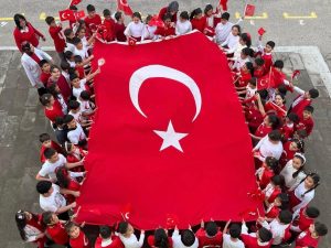 Türkiye Yüzyılı Maarif Modeli vizyonuyla bayrak sevgisini sanatla buluşturan sergide, Türk Bayrağı’nın yalnızca bir sembol değil; bir milletin ortak hafızası, bağımsızlık bilinci ve gururunun simgesi olduğu vurgulandı. Öğrencilerin farklı tekniklerle hazırladığı eserlerde ay-yıldız; geçmişe duyulan saygı, bugüne sahip çıkma sorumluluğu ve geleceğe dair umut duygularıyla sanatın diliyle yorumlandı.