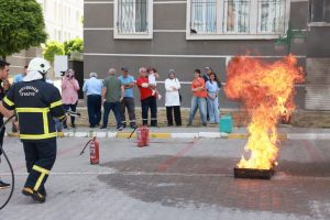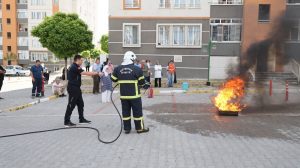 Nevşehir Belediyesi İtfaiyesi, Mehmet Akif Ersoy Mahallesi TOKİ Konutları’ndaki mahalle sakinlerine ve blok görevlilerine yangınla mücadele eğitimi verdi.