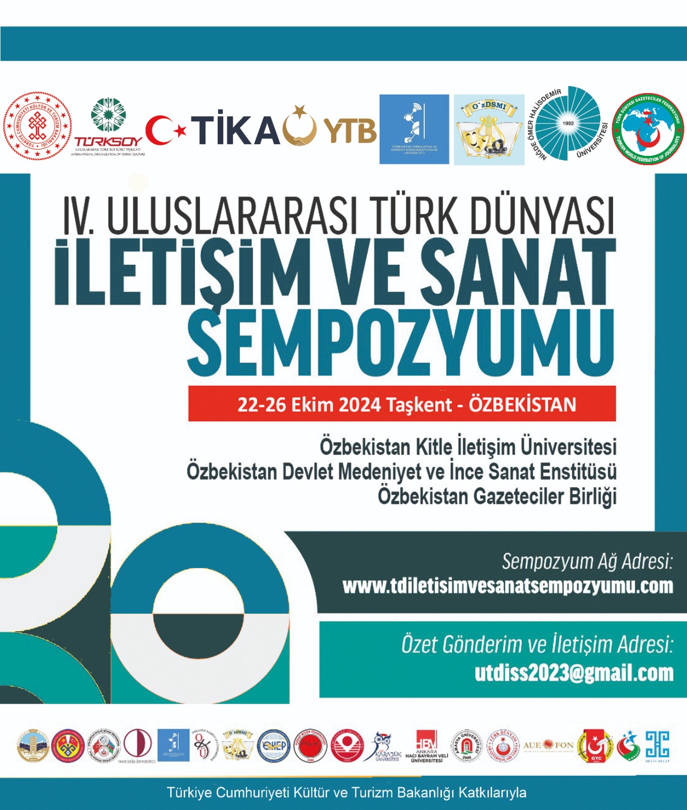 Türkiye Cumhuriyeti Kültür ve Turizm Bakanlığı, Türk İşbirliği ve Koordinasyon Ajansı Başkanlığı (TİKA), Yurtdışı Türkler ve Akraba Topluluklar Başkanlığı (YTB) ve Uluslararası Türk Kültürü Teşkilatı (TÜRKSOY) tarafından doğrudan desteklenen “IV. Uluslararası Türk Dünyası İletişim ve Sanat Sempozyumu” 22-26 Ekim 2024 tarihleri arasında Özbekistan’ın başkenti Taşkent’te gerçekleştirilecek.