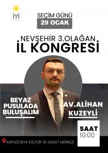 İYİ Parti Nevşehir İl kongresi hafta sonunda yapılacak. Kongreye Çeşitli illerden milletvekillerinin yanı sıra Parti genel merkezinden de yöneticilerin katılacağı bildirildi.