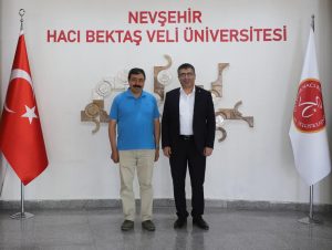 İzmir Kâtip Çelebi Üniversitesi (İKÇÜ) Rektörü Prof. Dr. Saffet Köse beraberinde Diyanet İşleri Başkanlık Müşaviri Ahmet Belada, Mehir Vakfı Yönetim Kurulu Başkanı Mustafa Özdemir ve Nevşehir Merkez Çiçekli Camii İmam Hatibi Ahmet Aydemir ile birlikte, Nevşehir Hacı Bektaş Veli Üniversitesi (NEVÜ) Rektörü Prof. Dr. Semih Aktekin’i ziyaret etti.