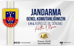 Başkan Süslü, “Vatanımızın güvenliği ve halkımızın huzuru için hizmet veren Jandarma Teşkilatının Kuruluşunun 184.Yıl Dönümü Kutlu Olsun. Bu vesile ile vatan uğruna canlarını feda eden aziz şehitlerimizi rahmet ve minnetle anıyoruz” ifadelerinde bulundu.