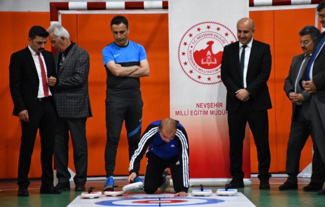 Nevşehir İl Milli Eğitim Müdürü Memet POLAT, Gençlik ve Spor İl Müdürü, Muhsin ÖZDEMİR, Okul Müdürleri ile birlikte “Floor Curling” sporunun Gazi Ortaokulunda düzenlenen tanıtımına katıldı