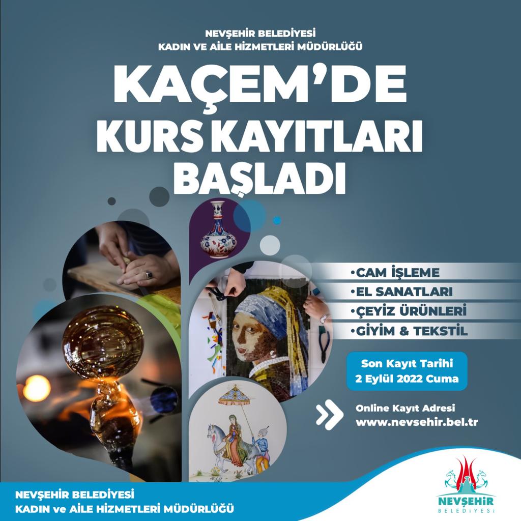 Nevşehir Belediyesi Kadın ve Aile Hizmetleri Müdürlüğü Kadın Çalışmaları Merkezi (KAÇEM)’de kadınlar 4 yeni kurs açılıyor.