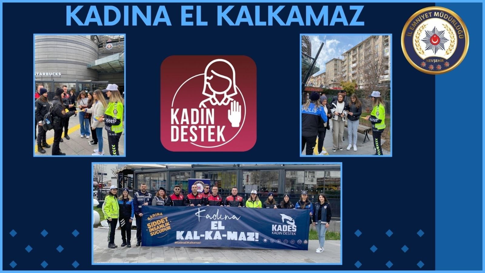 Aile içi ve Kadına Karşı Şiddetle Mücadele Büro Amirliği görevlilerimiz “Kadına El Kalkmaz” mottosu ile vatandaşlarımızla bir araya gelerek, KADES uygulamasının akıllı telefonlara nasıl yükleneceği ve nasıl kullanılabildiği hakkında bilgilendirme faaliyetinde bulunmuşlardır.