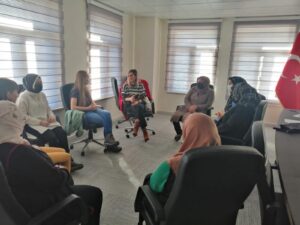 Aile Danışma Merkezi’nde görevli Psikolog İlayda Altun İçen tarafından gerçekleştirilen atölye çalışmalarında yaratıcı drama etkinlikleri yapılıyor.