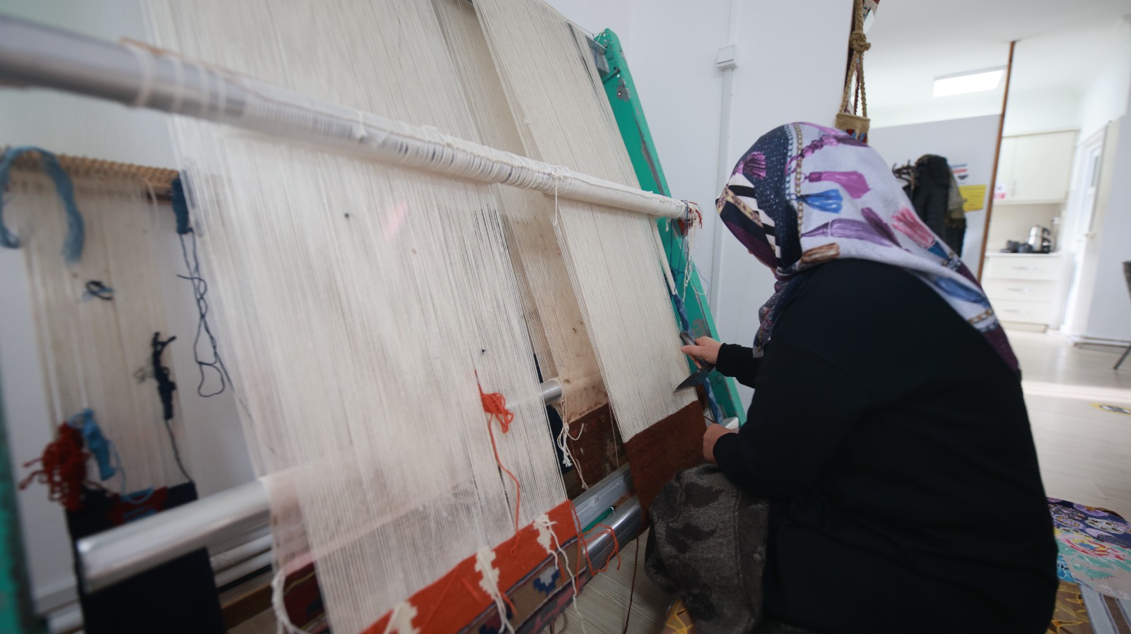 Toplumun temel yapı taşları olan kadınların ekonomik ve sosyal anlamda güçlenmelerine katkıda bulunmak amacıyla açılan kursta genç kız ve kadınlar kök boya tekniği kullanılarak oluşturulan renkli iplerle halı ve kilim dokumayı öğreniyor.