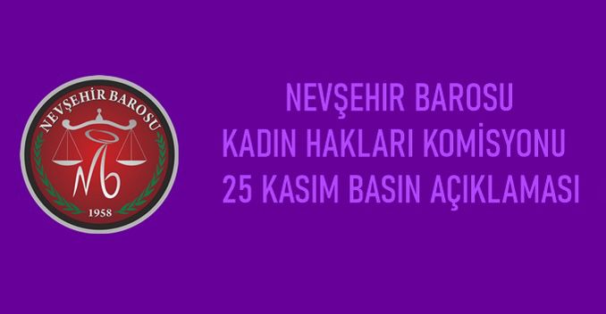 Nevşehir Barosu Kadın Hakları Komisyonu 25 Kasım kadına karşı şiddetle mücadele günü dolayısıyla bir basın açıklaması yayınladı.