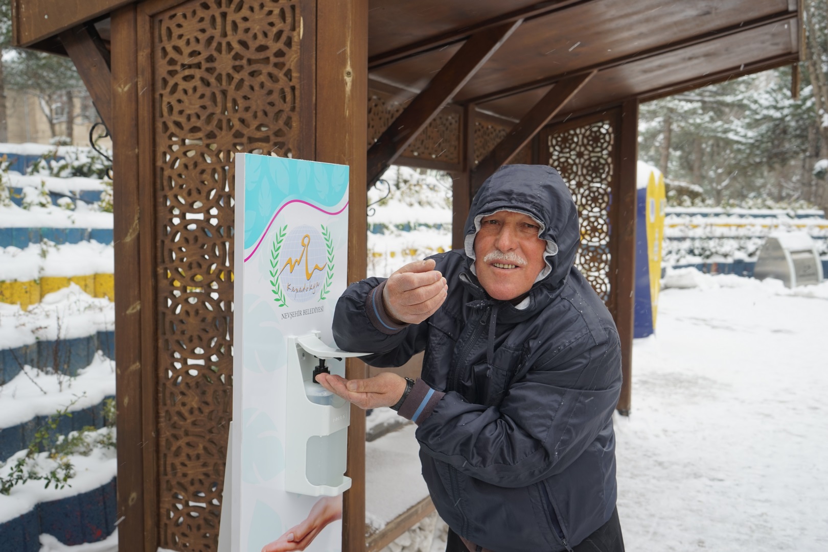 Cadde ve sokaklara dezenfektan aparatları yerleştirildi