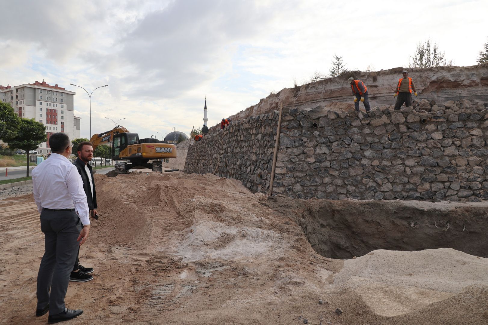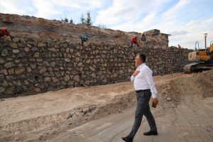 Nevşehir Belediye Başkanı Dr. Mehmet Savran, Bekdik Mahallesi’nde bulunan Kaldırım Mezarlığı’nın TOKİ 4. Etap kısmına bakan yolda Nevşehir Belediyesi Fen İşleri Müdürlüğü ekipleri tarafından gerçekleştirilen istinat duvarı yapımını yerinde inceledi. Beraberinde Başkan Yardımcısı Ersin Erol ve Bekdik Mahallesi Muhtarı Kenan Başarır ile birlikte alanda incelemelerde bulunan Savran, çalışmalar hakkında bilgi aldı.