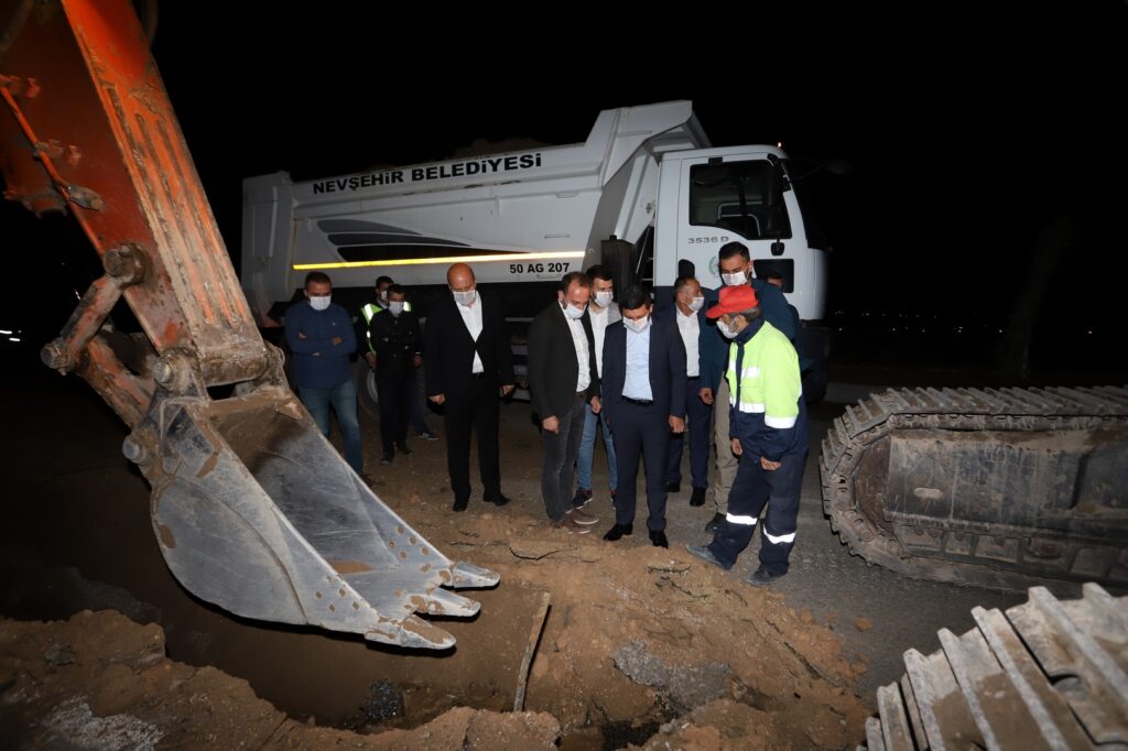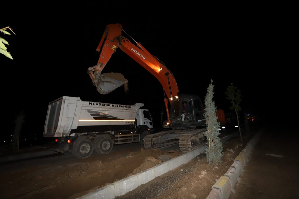 Belediye ekipleri şimdi de Nevşehir Kalesi yanındaki alternatif bağlantı yolunda yapılacak olan sıcak asfalt serimi öncesinde altyapı çalışmalarına başladı.