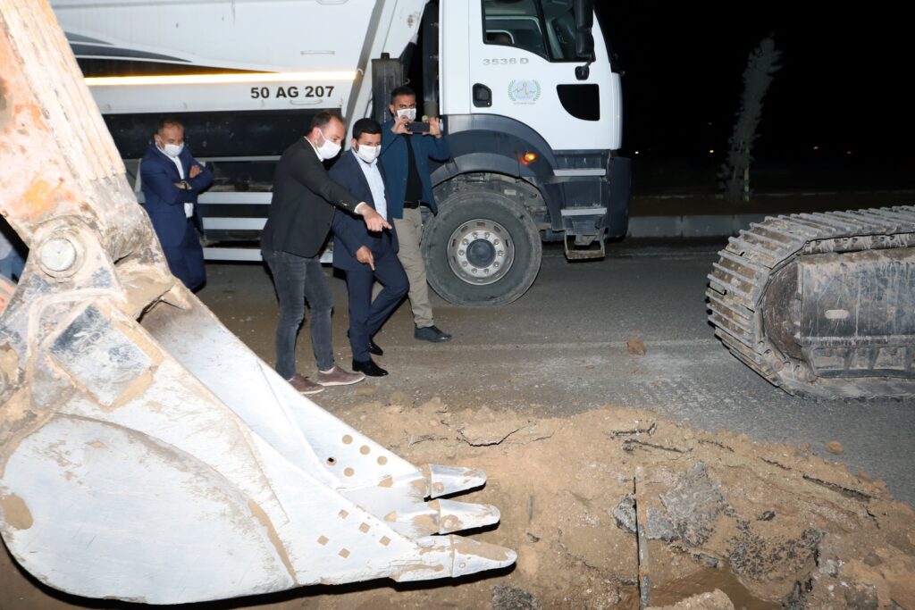 Fen İşleri Müdürlüğü ekiplerinin bu amaçla 3 ayrı noktada sabaha kadar sürecek olan çalışmalarını denetleyerek, sahadaki belediye personellerine kolaylıklar dileyen Belediye Başkanı Rasim Arı, başkan yardımcıları ve birim müdürlerinden çalışmalara ilişkin bilgi aldı.