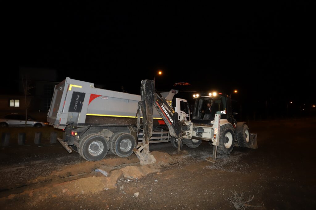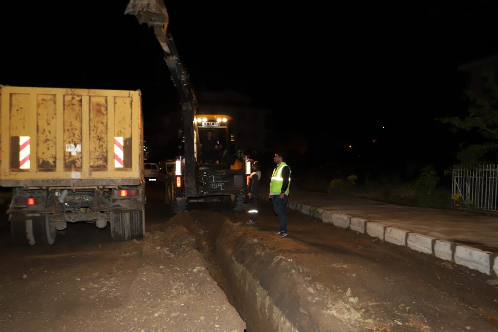 Asfalt serimi öncesinde de altyapıyı sağlamlaştırıyoruz. Çalışmaları kısa sürede tamamlayabilmek için ekiplerimiz sabaha kadar burada çalışacak.