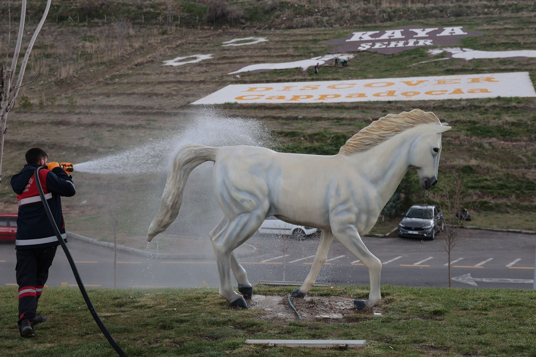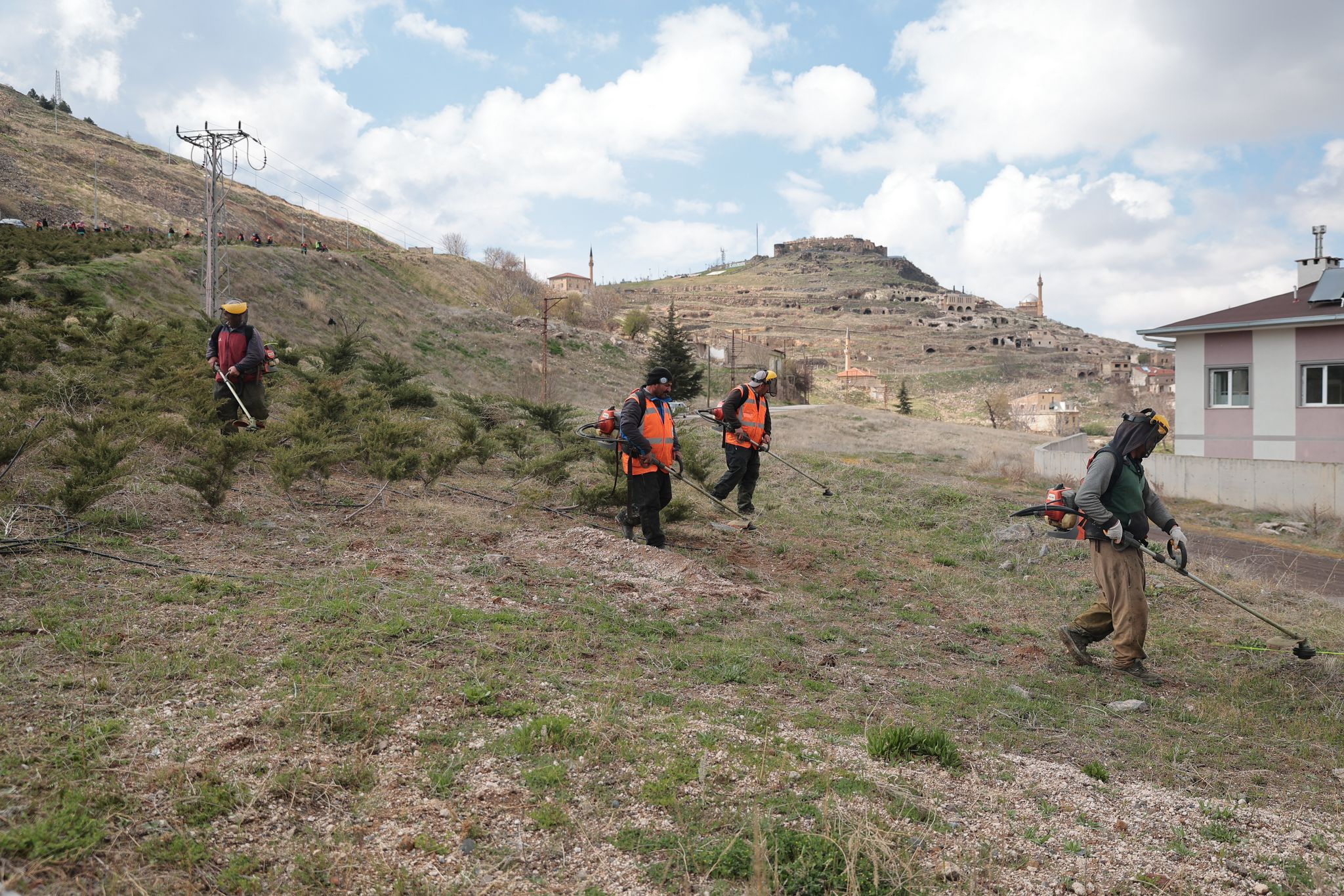 Nevşehir Belediyesi ekipleri, Ramazan Bayramı öncesinde Nevşehir Kalesi, Kayaşehir ve Meryem Ana Kilisesi çevresinde yoğun bir temizlik çalışması gerçekleştiriyor.