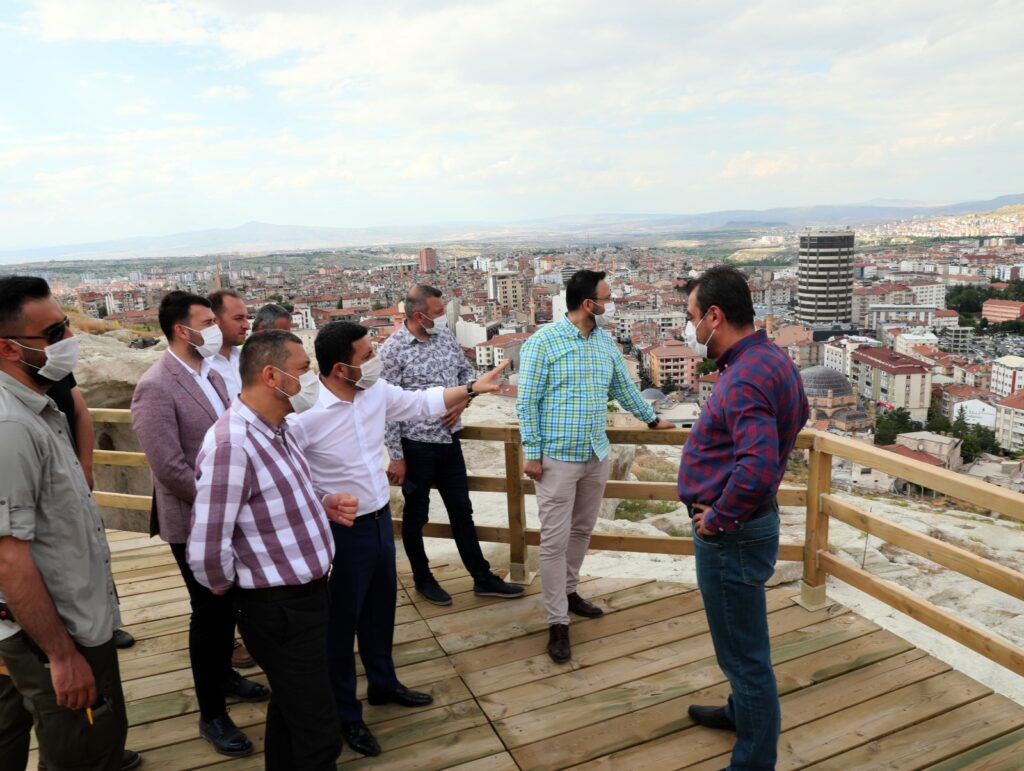 Bölgenin hemen üzerinde bulunan Nevşehir Kalesi’nin de ışıklandırılarak turizme hazır hale getirildiğini belirten Arı, burada yürütülen çalışmalara ilişkin Milletvekilleri Açıkgöz ve Menekşe, İl Başkanı Yanar ve Merkez İlçe Başkanı Yiğitarslan’a bilgiler vererek istişarelerde bulundu.