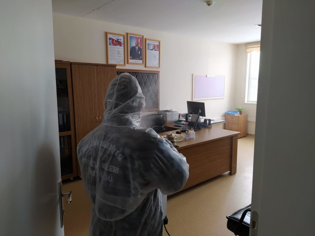 İl Sağlık Müdürlüğü, Anadolu Ajansı, Özel Eğitim Uygulama Okulu, İl Kültür ve Turizm Müdürlüğü, Paşakonağı, Zabıta Müdürlüğü, Esnaf ve Sanatkarlar Kredi ve Kefalet Kooperatifi, noterler ve H.Rasim Uzer Eğitim Meslek Okulu binalarını ilaçlayarak dezenfekte etti.