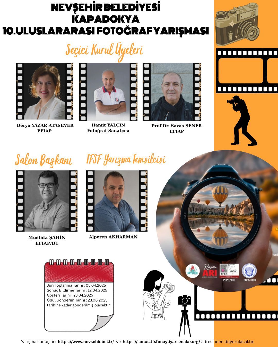 Salon Başkanlığını EFIAP/D1 Mustafa Şahin’in yapacağı organizasyonda TFSF Yarışma Temsilcisi olarak Alperen Akharman yer alacak. Yarışmadaki Kapadokya Özel Ödülü ise yapılacak olan değerlendirme sonunda Kapadokya bölgesinde çekilen bir fotoğrafa verilecek.