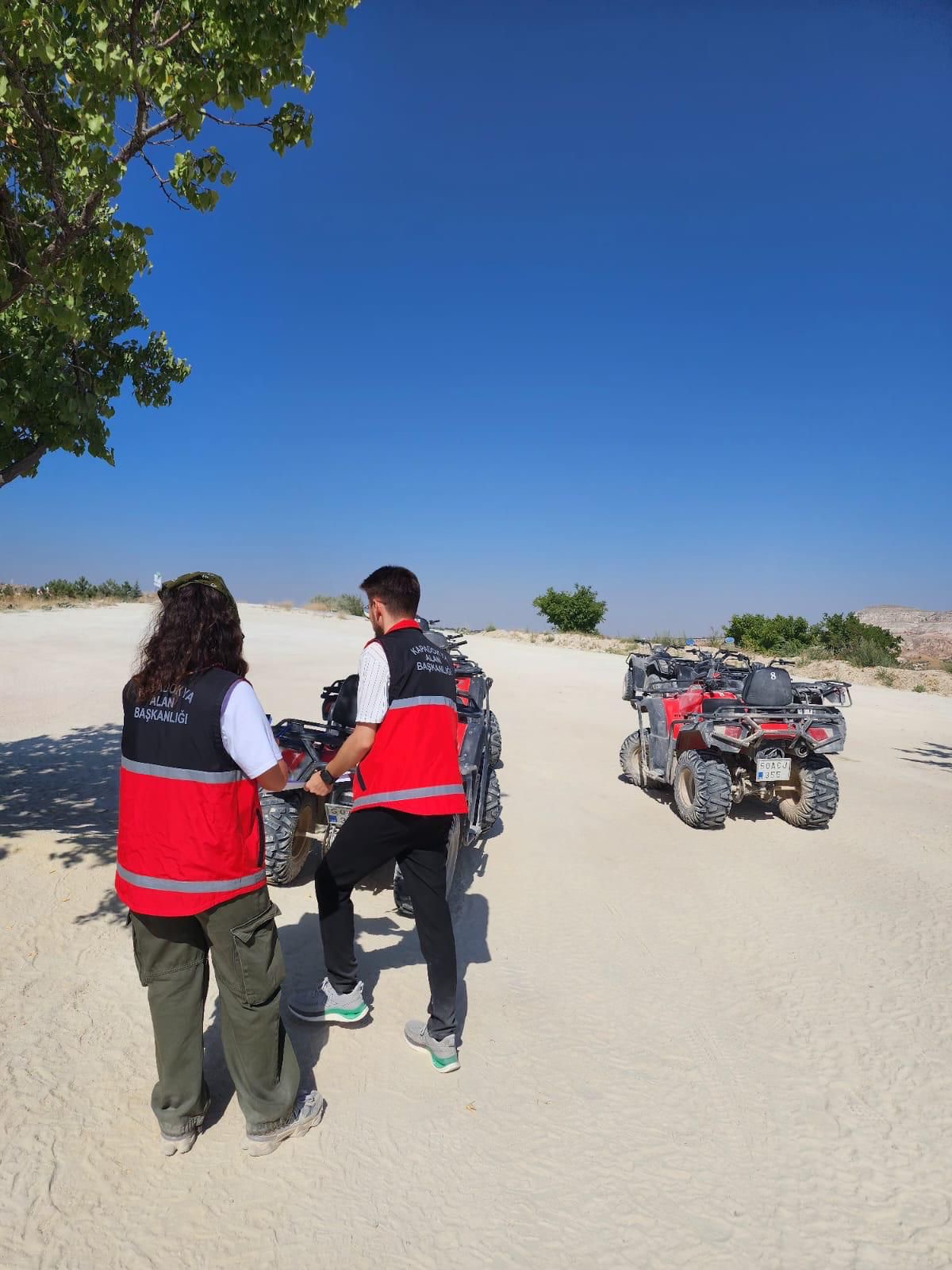 UNESCO Dünya Mirası listesinde yer alan Kapadokya’nın doğal ve kültürel dokusunu koruma ve geliştirme vizyonu doğrultusunda çalışmalarını sürdüren Kapadokya Alan Başkanlığı, bölge genelinde gerçekleştirdiği kapsamlı denetimlerle ATV tur faaliyetlerini mercek altına aldı. Yapılan saha çalışmaları kapsamında, mevcut ATV istasyonlarında bulunan araçların ve firmaların izinli ATV sayıları kontrol edilerek, izinsiz faaliyet gösteren firma ve araçlar tespit edildi.
