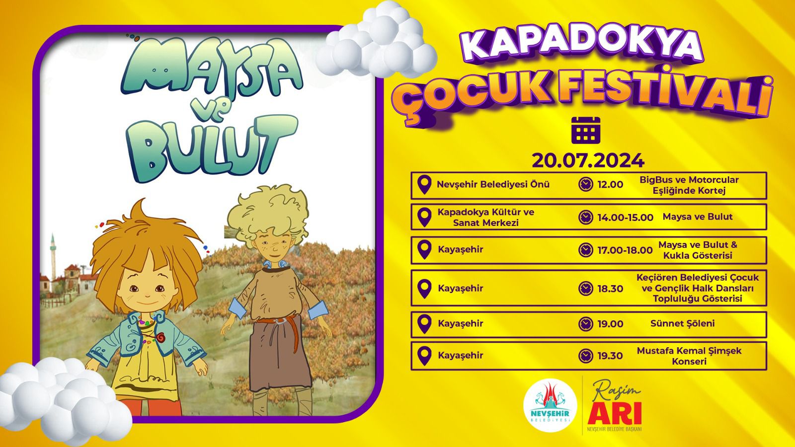 Belediye Başkanı Rasim Arı’nın ilk görev döneminde başlattığı ve bu yıl da sürdürdüğü Sünnet Şöleni’de yine Kayaşehir’de yapılacak. Burada Nevşehirlilere hitap edecek olan Belediye Başkanı Arı, çocuklara çeşitli hediyeler dağıtarak birlikte fotoğraf çektirecek.