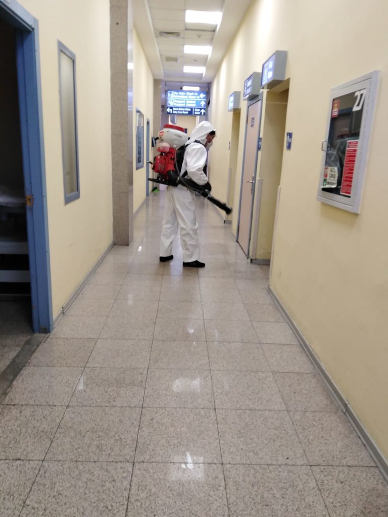 Belediye ekipleri ayrıca yolcuların bagaj ve eşyalarının yanı sıra kullandıkları otobüs ve havalimanı terminalini de dezenfekte etti.