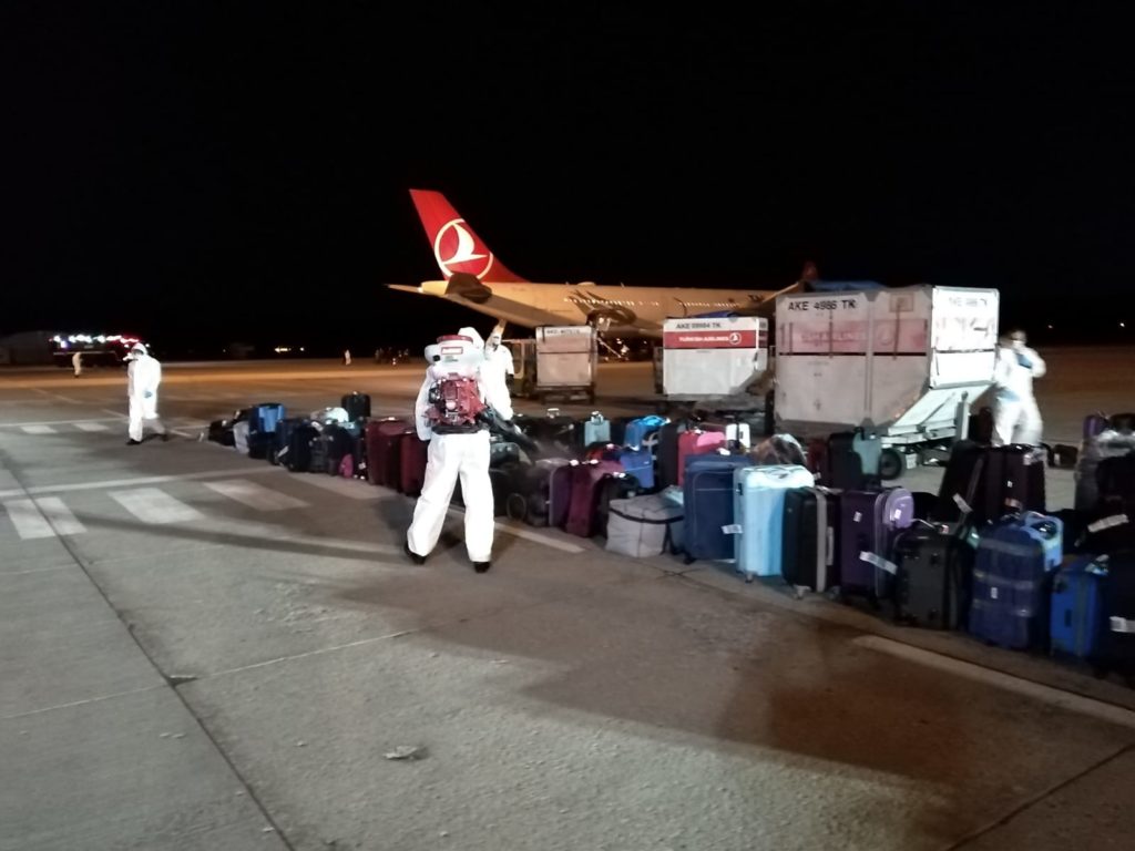 Kapadokya Havalimanı’ndan otobüslerle gözlem altında tutulacakları Niğde’deki yurtlara gönderilen Türk yolcuların, uçağın kargo bölümünden çıkan tüm bagajları ve eşyaları Nevşehir Belediyesi ekiplerince dezenfekte edildikten sonra yolculara verildi.