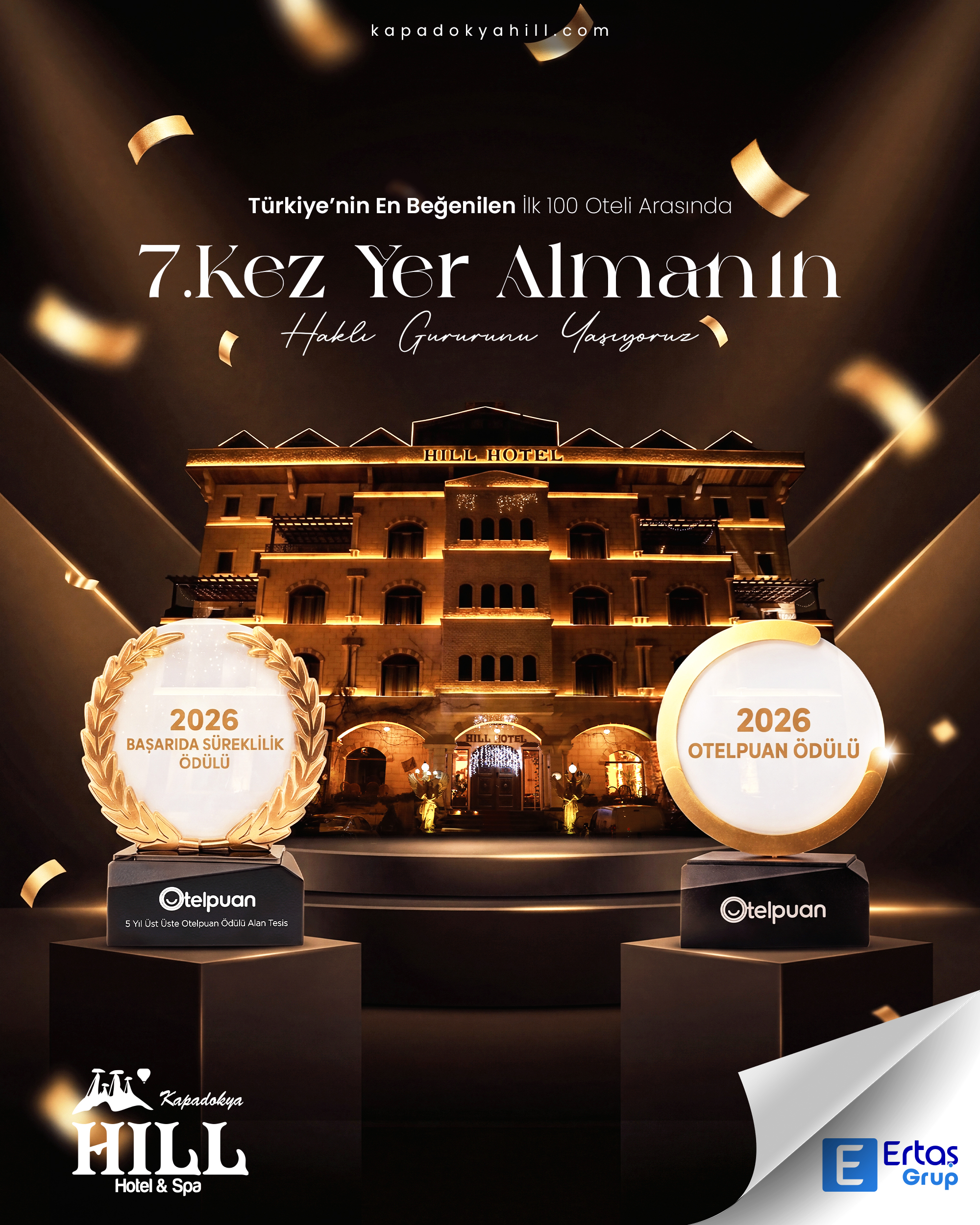 Misafir memnuniyetini merkeze alan hizmet anlayışıyla yıllardır yüksek puanlarını koruyan Kapadokya Hill Hotel & Spa, yalnızca dönemsel bir başarı değil, sürdürülebilir kalite ve istikrarın güçlü bir temsilcisi olduğunu bir kez daha ortaya koydu.